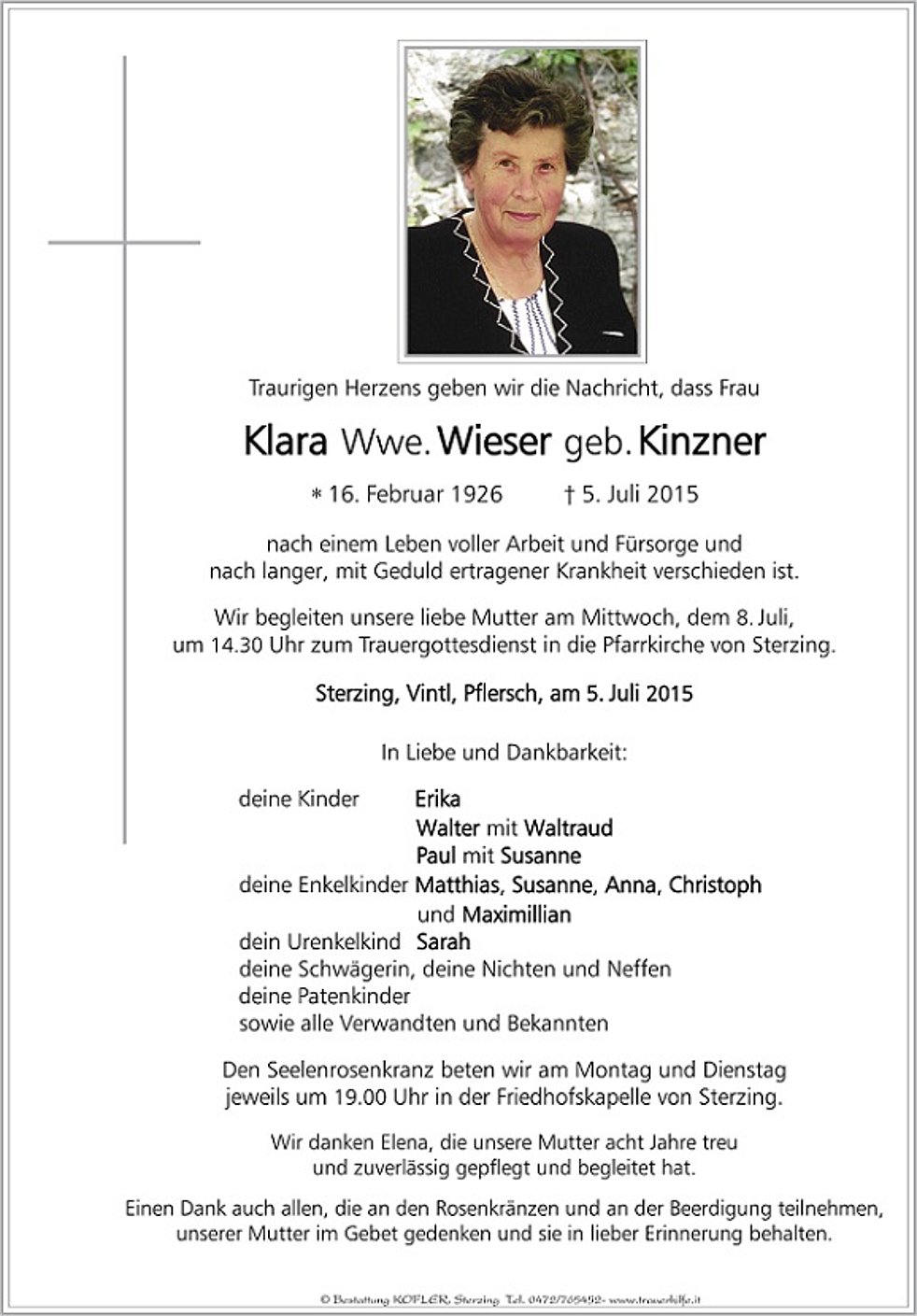 Klara Wwe. Wieser geb. Kinzner