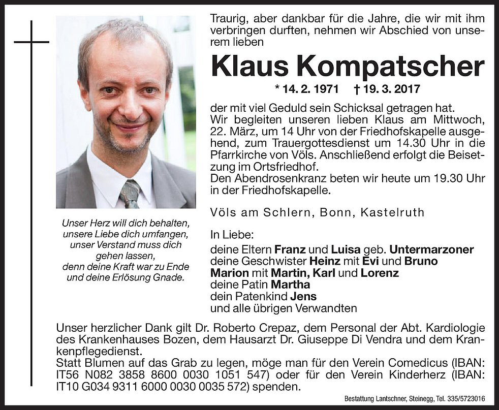 Wir begleiten unseren lieben Klaus am Mittwoch, 22. März, um 14 Uhr