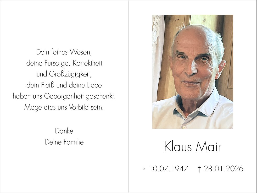Den Trauergottesdienst feiern wir im Dom zu Bozen am Dienstag, den 3. Februar, um 14 Uhr.