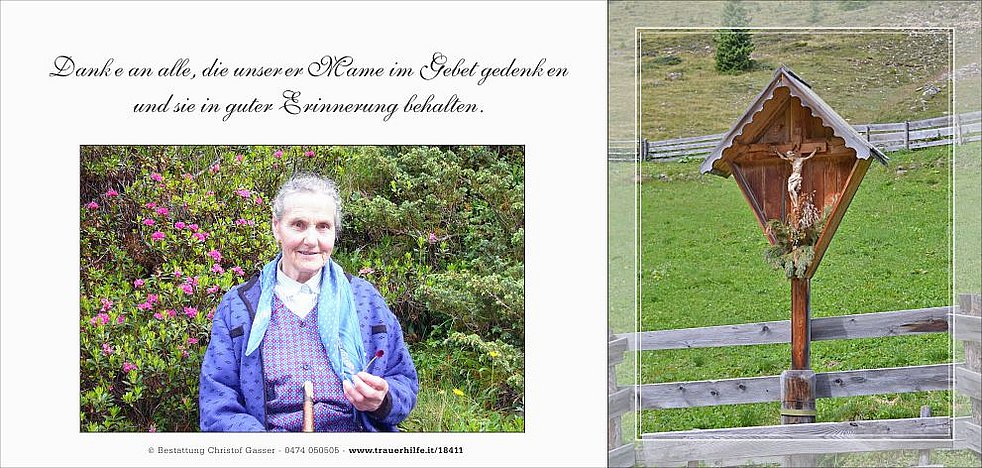 Besonders danken wir Irmgard und Waltraud sowie Herrn Dr. Ulrich Plaikner für die liebevolle Betreuung. Ein großer Dank auch an all jene, die sie begleitet und besucht haben und weiterhin in liebevoller Erinnerung behalten.