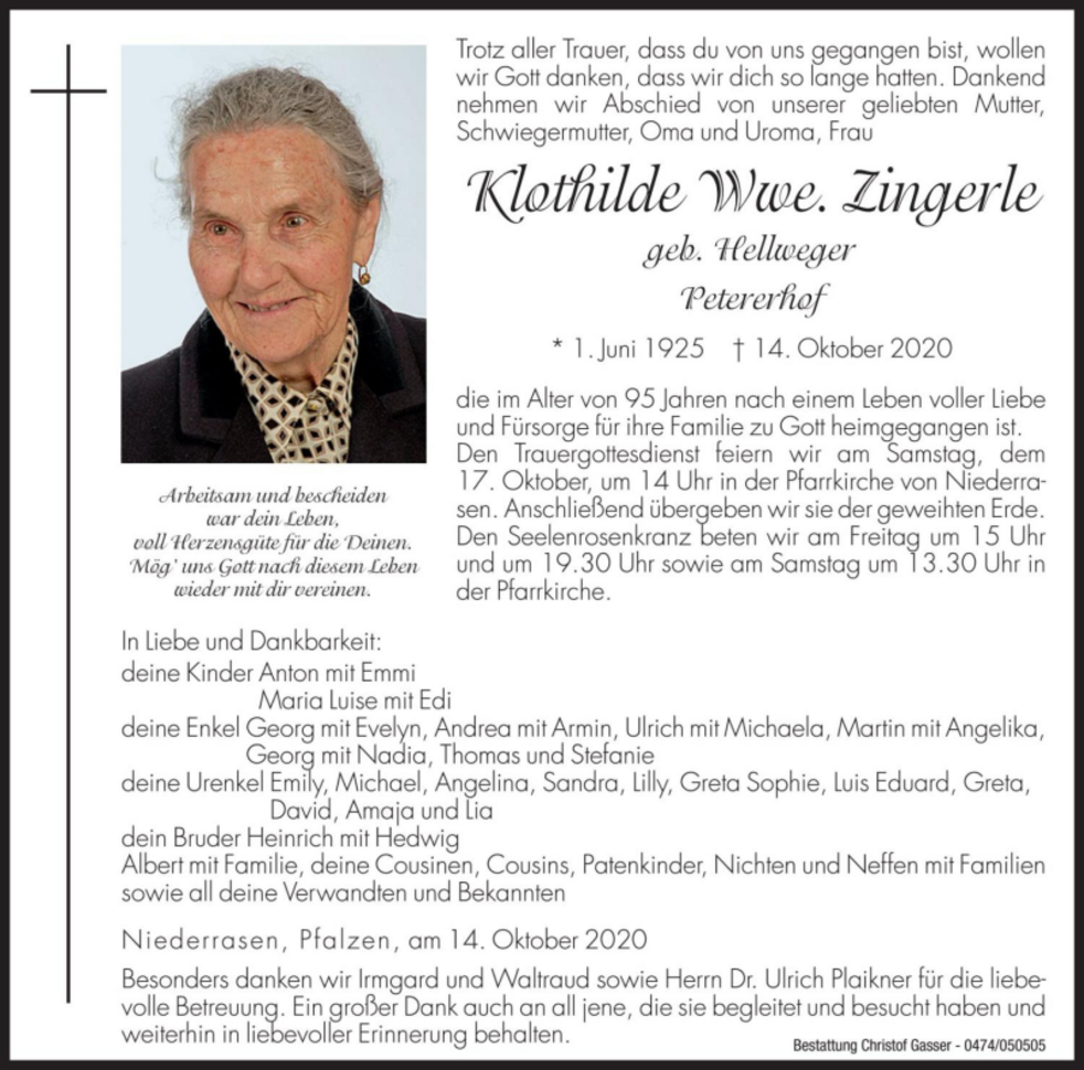 Klothilde Wwe. Zingerle