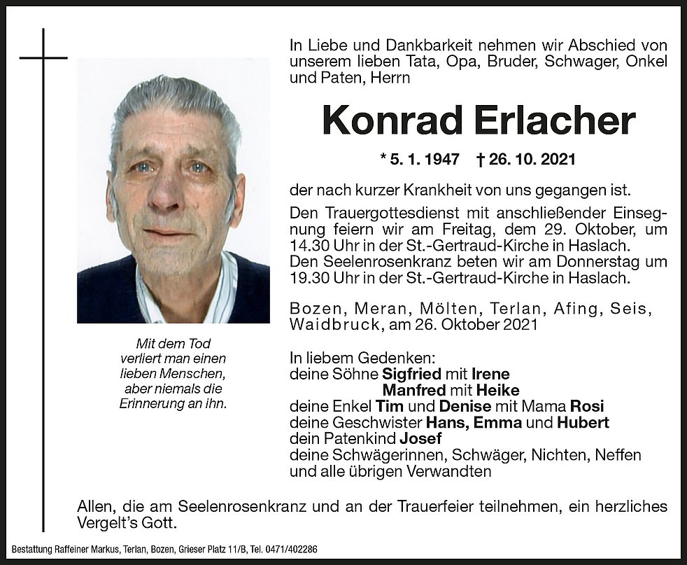 In Liebe und Dankbarkeit nehmen wir Abschied von unserem lieben Tata, Opa, Bruder, Schwager, Onkel und Paten, Herrn
