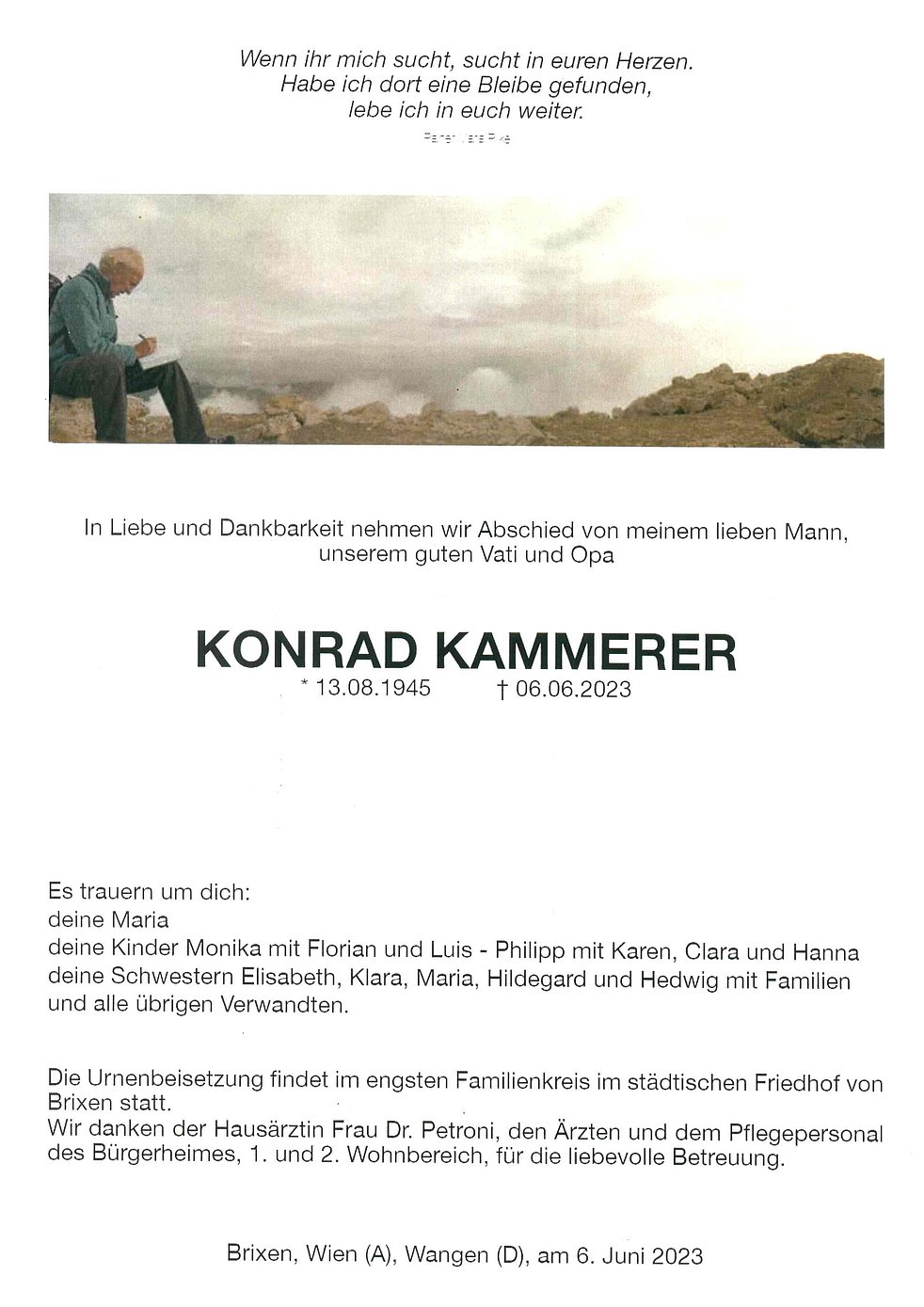 Liebe Maria! Mein aufrichtiges Beileid zum Heimgang Deines geliebten Konrad! Ich wünsche Dir für diese schwere Zeit des Loslassens, des Abschieds und des Annehmens viel, viel Kraft.