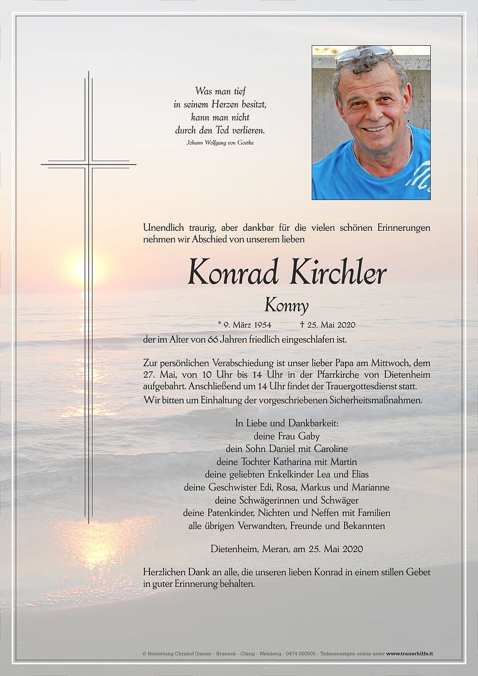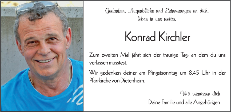 Herzlichen Dank an alle, die unseren lieben Konrad in einem stillen Gebet in guter Erinnerung behalten.