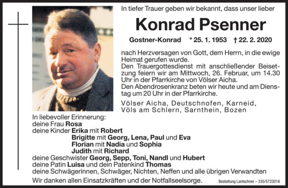 am Mittwoch, 26. Februar, um 14.30 Uhr in der Pfarrkirche von Völser Aicha.