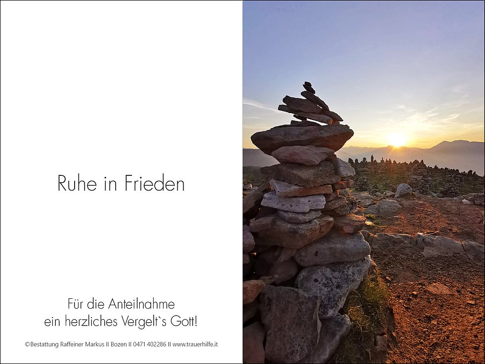 Ein besonderer Dank gilt dem Palliativzentrum vom Krankenhaus Bozen, dem Sozialsprengel Zentrum-Bozner Boden für die liebevolle Betreuung.