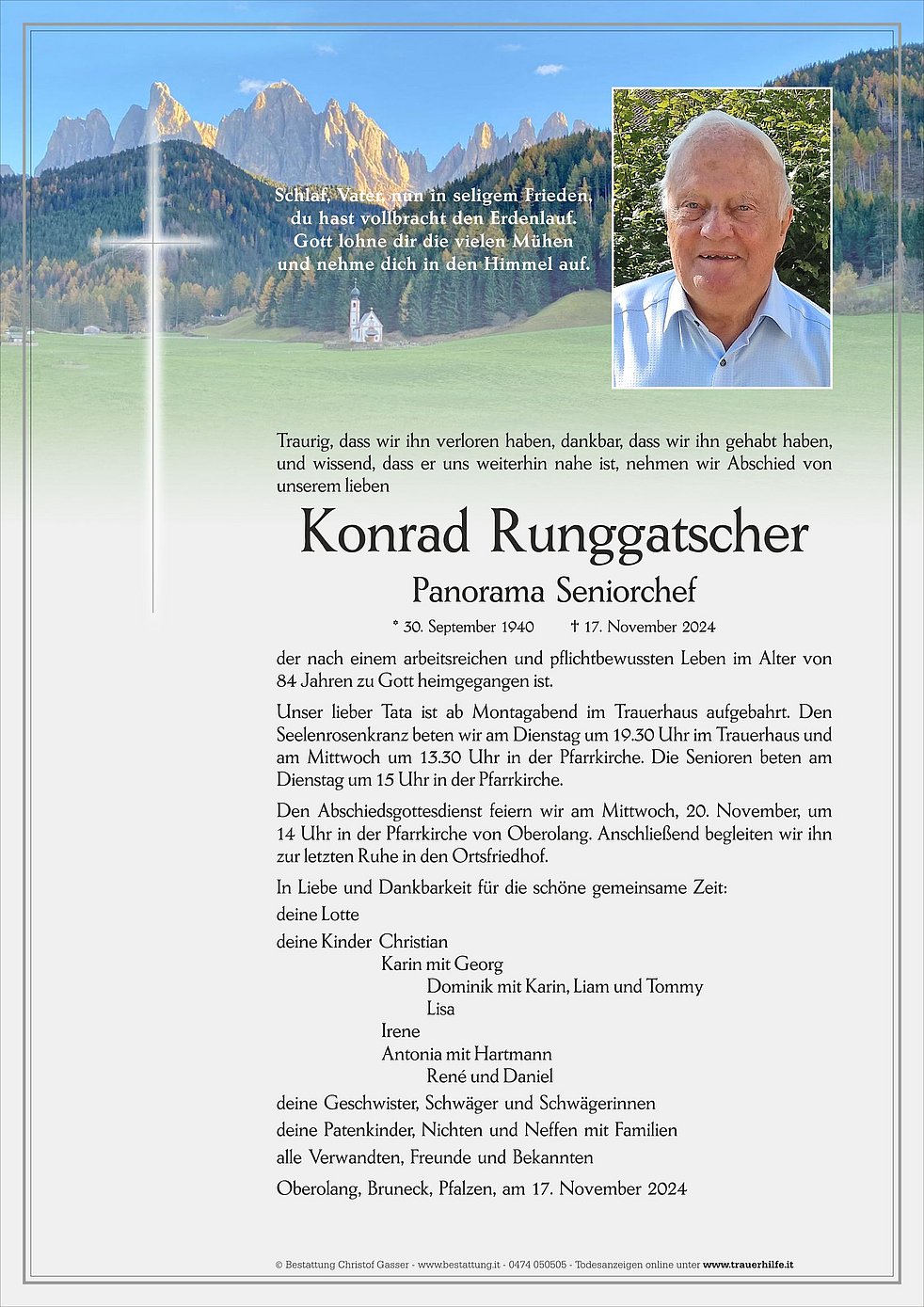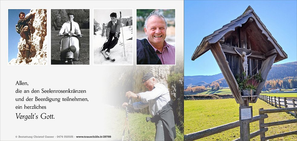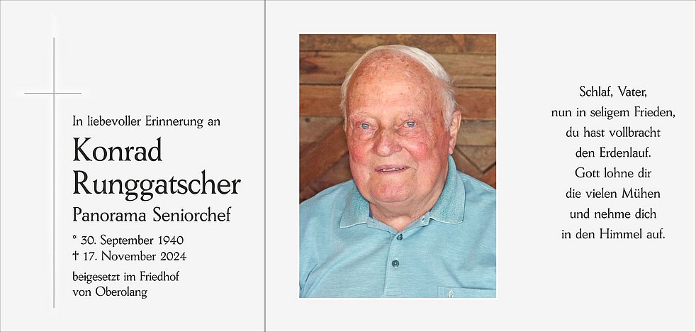 Den Abschiedsgottesdienst feiern wir am Mittwoch, 20. November, um 14 Uhr in der Pfarrkirche von Oberolang. Anschließend begleiten wir ihn zur letzten Ruhe in den Ortsfriedhof.