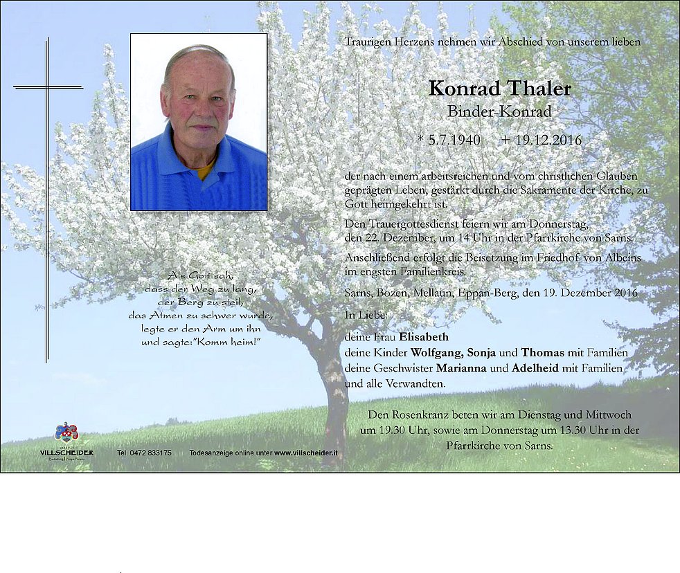 Anschließend erfolgt die Beisetzung im Friedhof von Albeins im engsten Familienkreis.