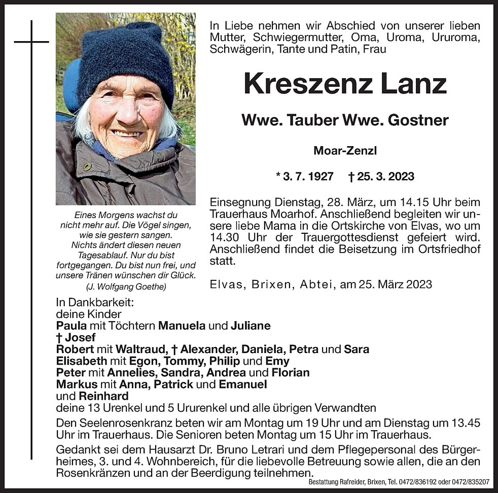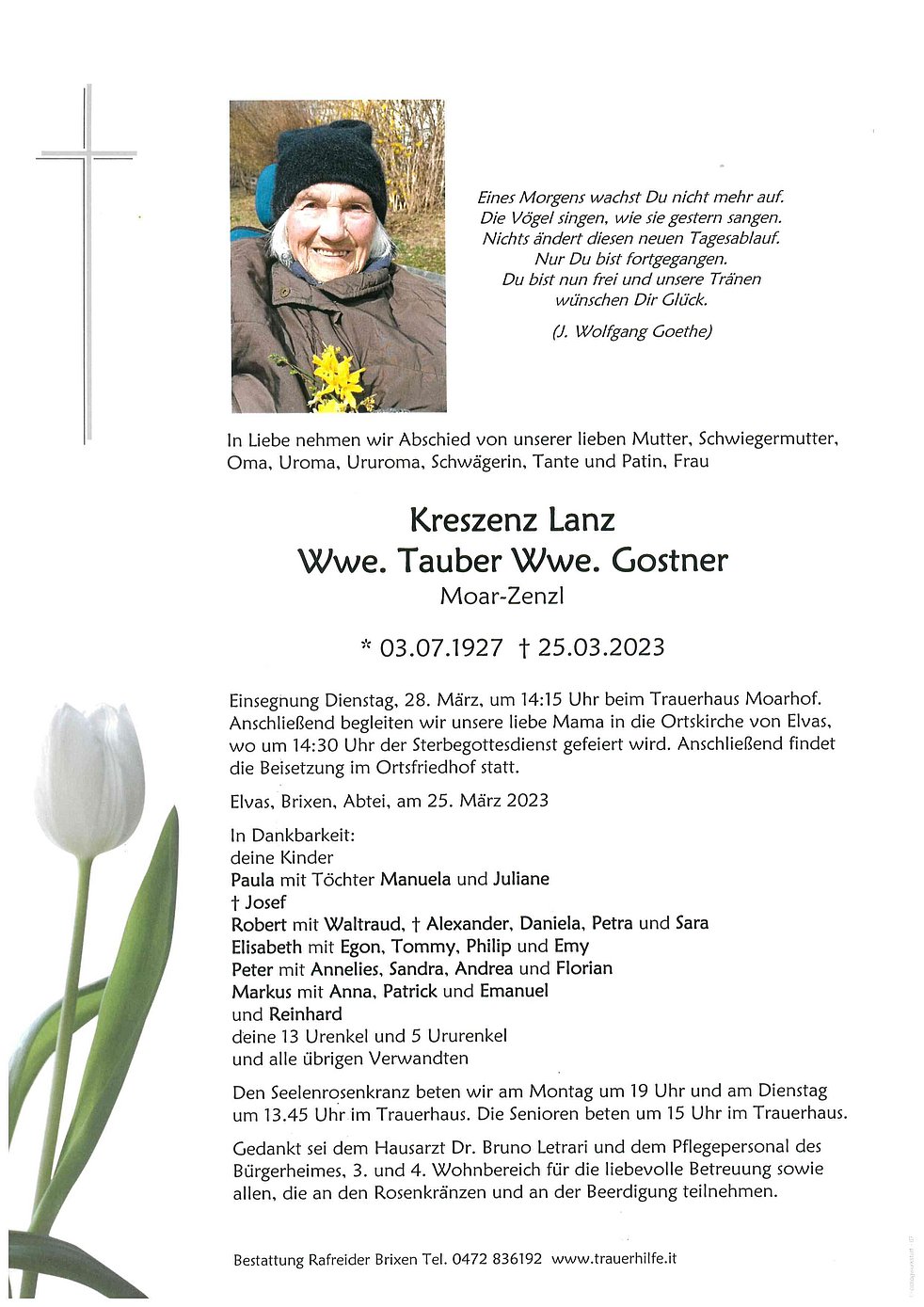 Kreszenz Lanz Wwe. Tauber Wwe. Gostner
