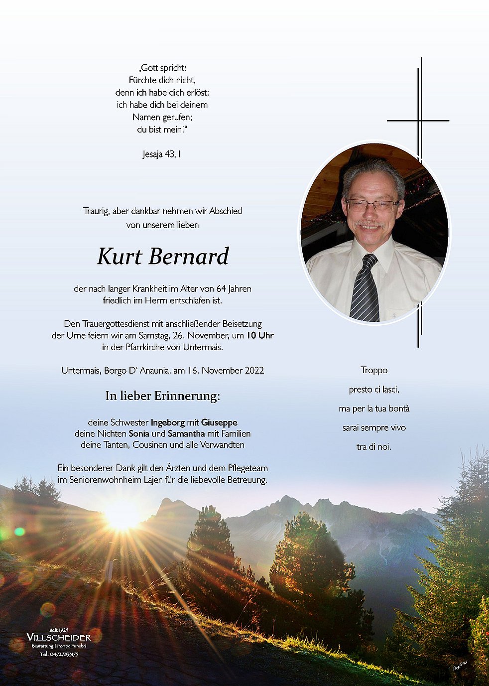 Wwerte Trauerfamilie. Ich moechte mit den Verwandten unbekannter Weise mit weinen und den Schmerz teilen. Der Herr wird Dich behueten KURT