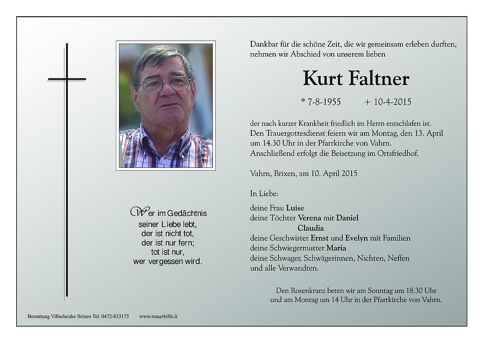 Den Trauergottesdienst feiern wir am Montag, den 13. April