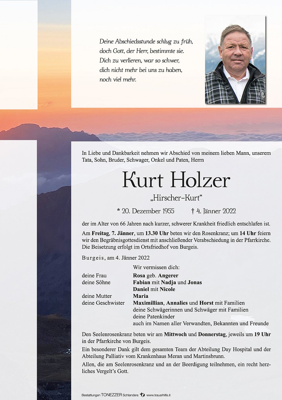 Die Beisetzung erfolgt im Ortsfriedhof von Burgeis.