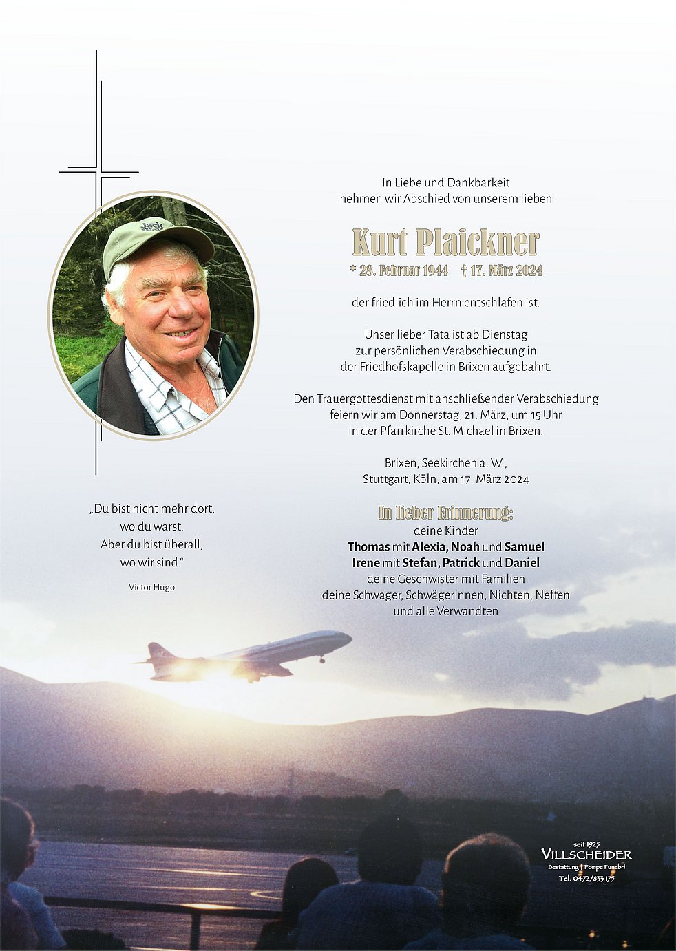 Trauerfeier: 21.03. - 15:00 Uhr Brixen