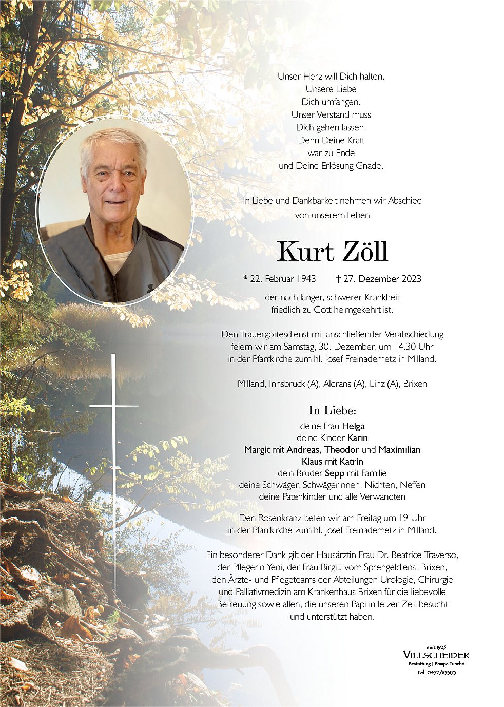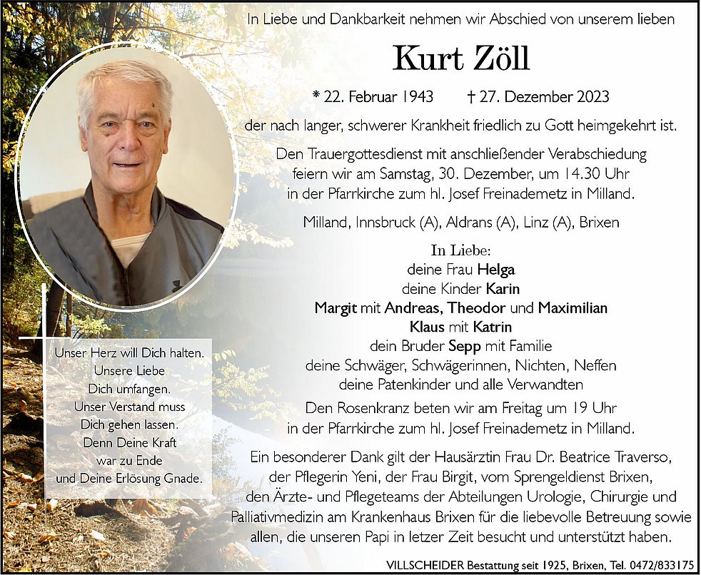 Begräbnisgottesdienst: 30.12. - 14:30 Uhr Milland