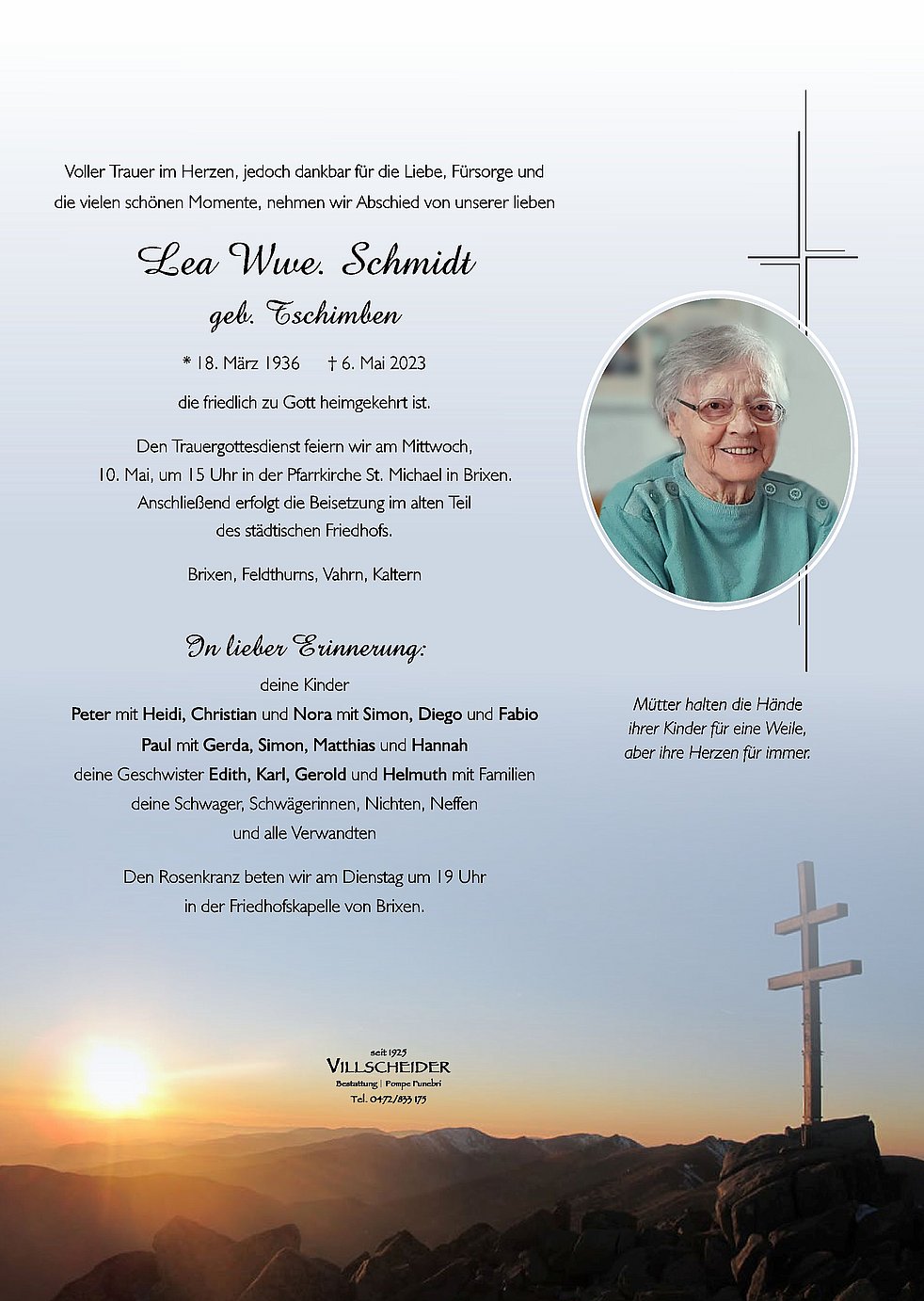 Begräbnisgottesdienst: 10.05. - 15:00 Uhr Brixen
