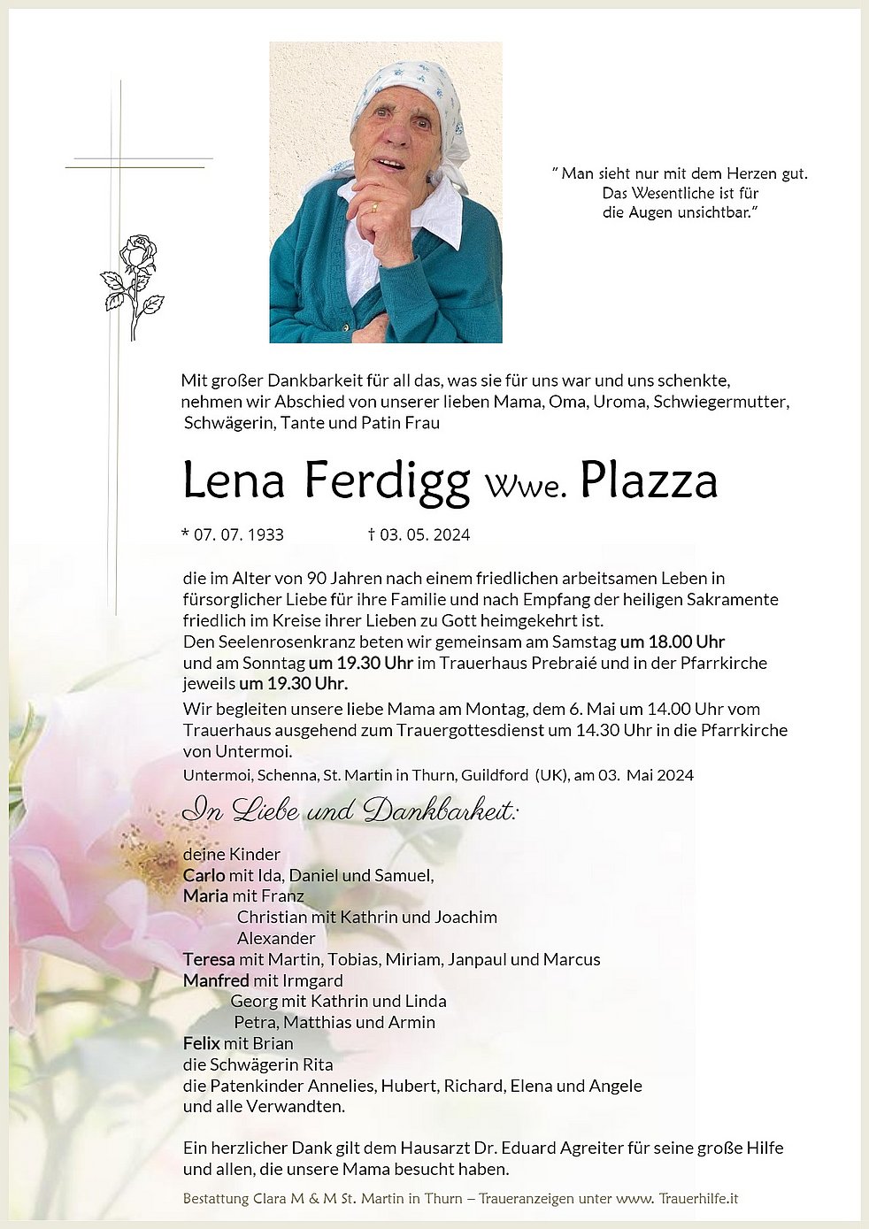Begräbnisgottesdienst: 06.05. - 14:30 Uhr Untermoi