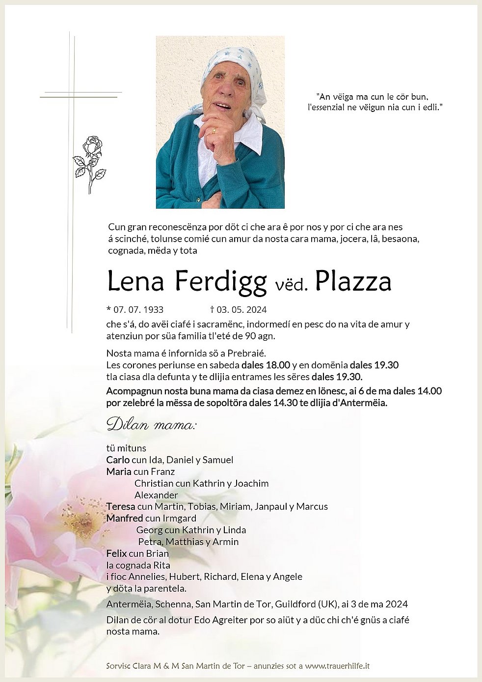Palsede in pêsc Lena 🌹condolianzes a os düc de familia ❤