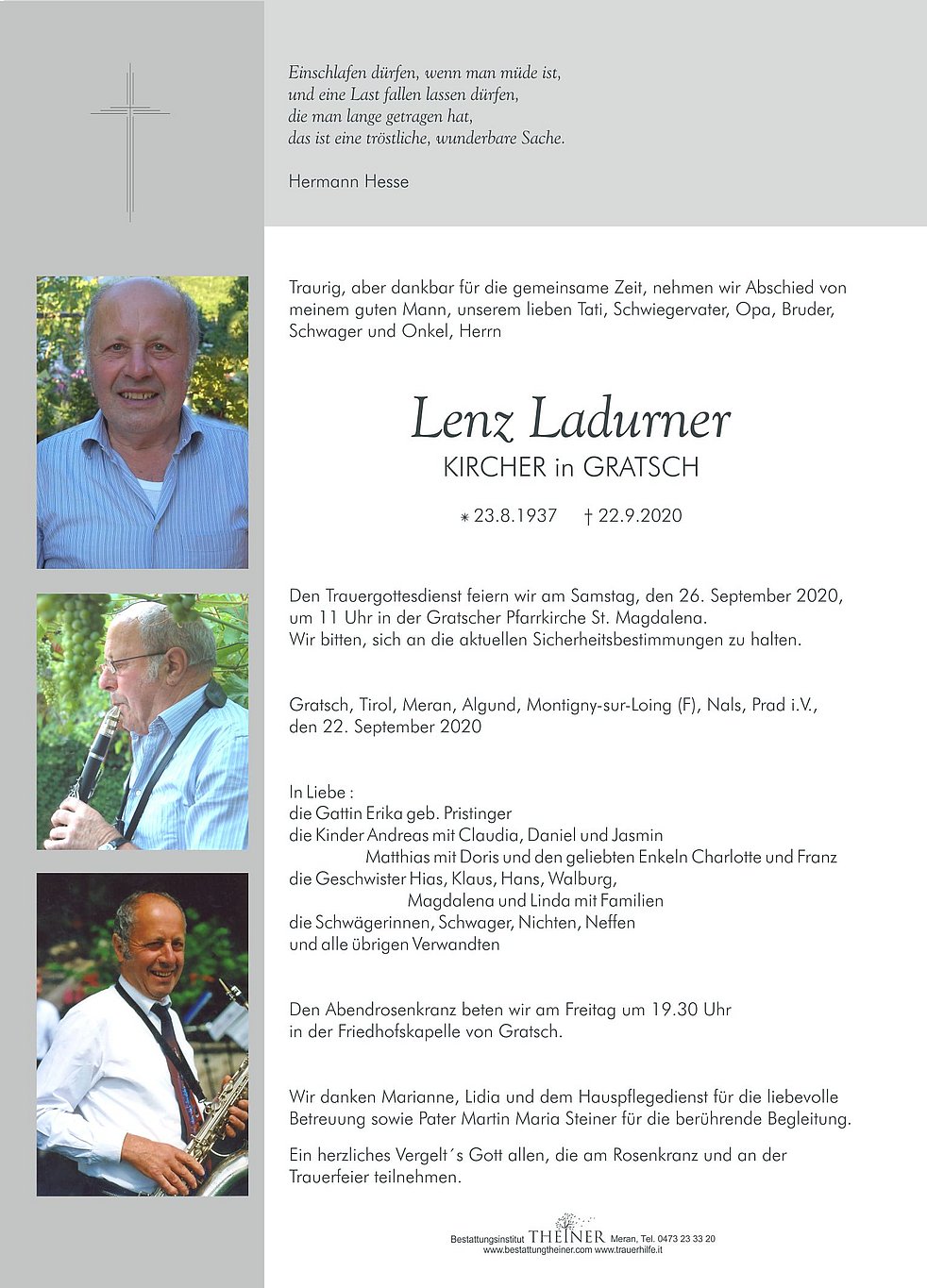 Traurig, aber dankbar für die gemeinsame Zeit, nehmen wir Abschied von meinem guten Mann, unserem lieben Tati, Schwiegervater, Opa, Bruder, Schwager und Onkel, Herrn
