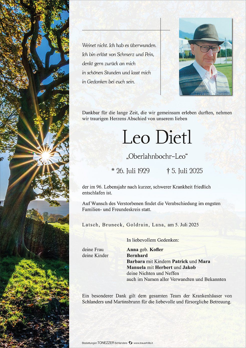 Wir drücken allen Angehörigen unser aufrichtiges Mitgefühl und unser herzliches Beileid aus. Möge euch der Glaube an Gott, die Zeit der Trauer lindern und den Schmerz in liebevolle Erinnerungen wandeln. Ruhe in Frieden Leo, das ewige Licht möge dir leuchten.