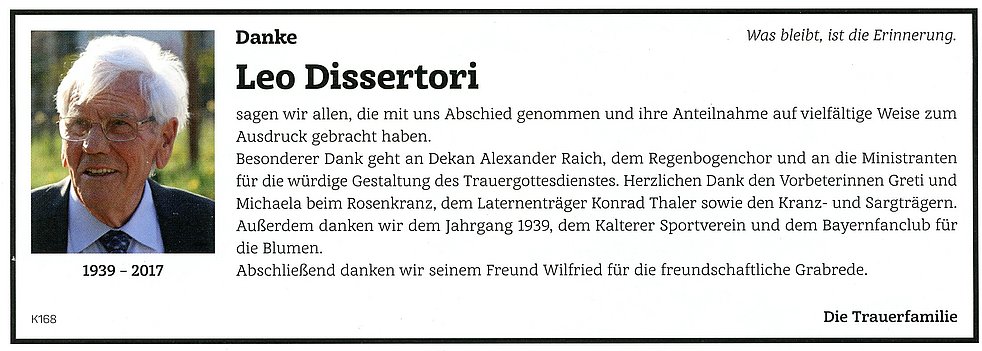 Allen, die am Rosenkranz und an der Beerdigung teilnehmen, im Voraus ein herzliches Vergelt´s Gott.