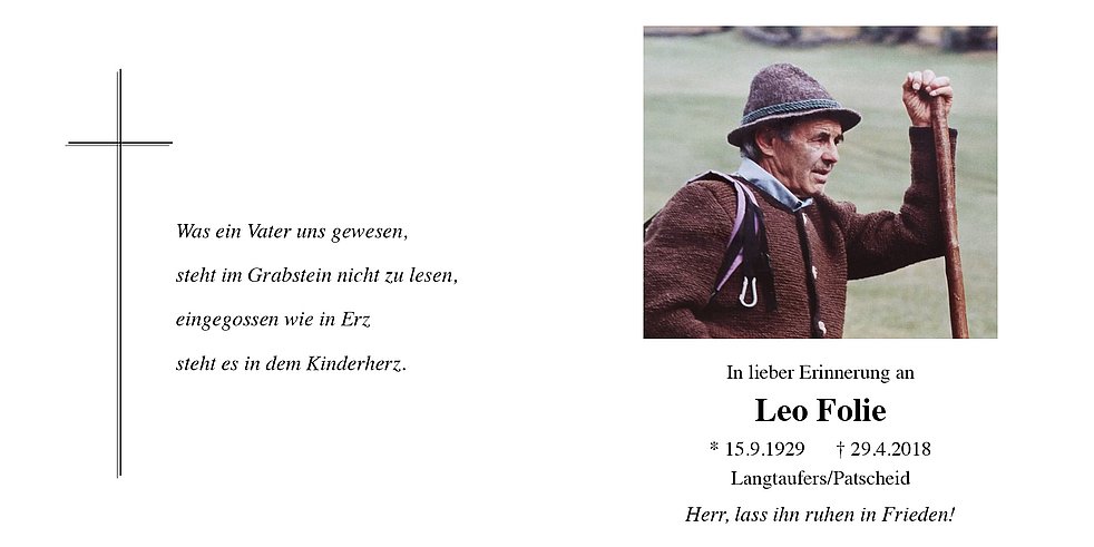 vom Trauerhaus (Patscheid) aus zum Gottesdienst um 14 Uhr in die Pfarrkirche