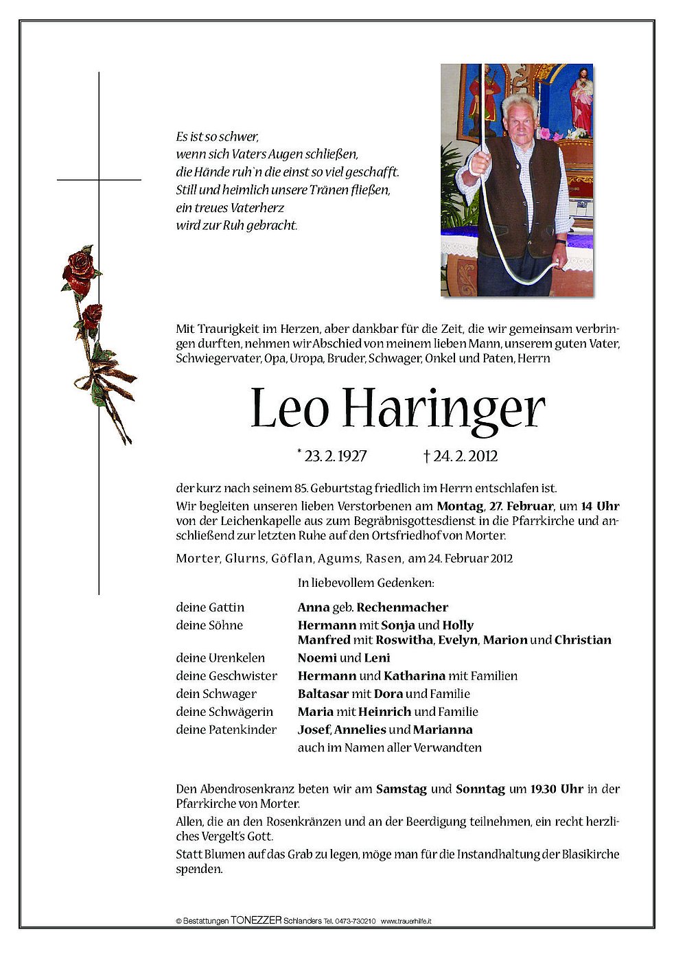 Wir begleiten unseren lieben Verstorbenen am Montag, 27. Februar, um 14 Uhr von der Leichenkapelle aus zum Begräbnisgottesdienst in die Pfarrkirche und anschließend zur letzten Ruhe auf den Ortsfriedhof von Morter.