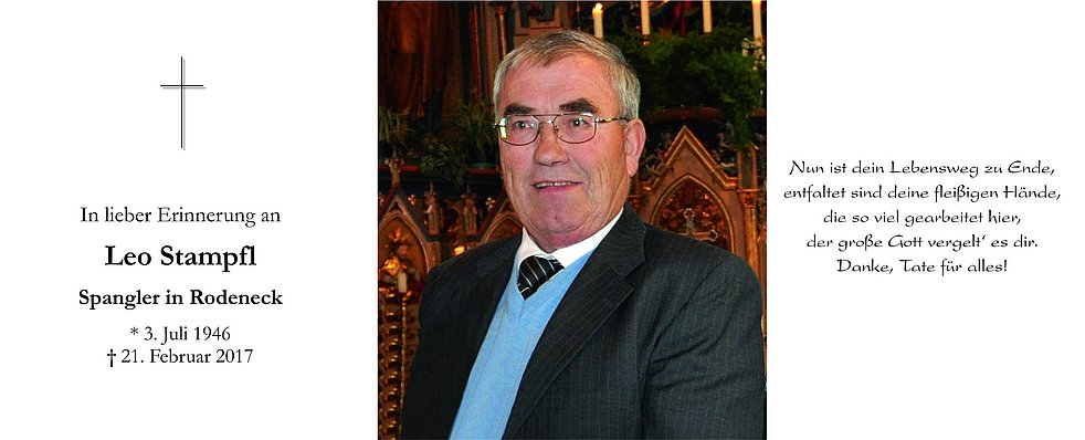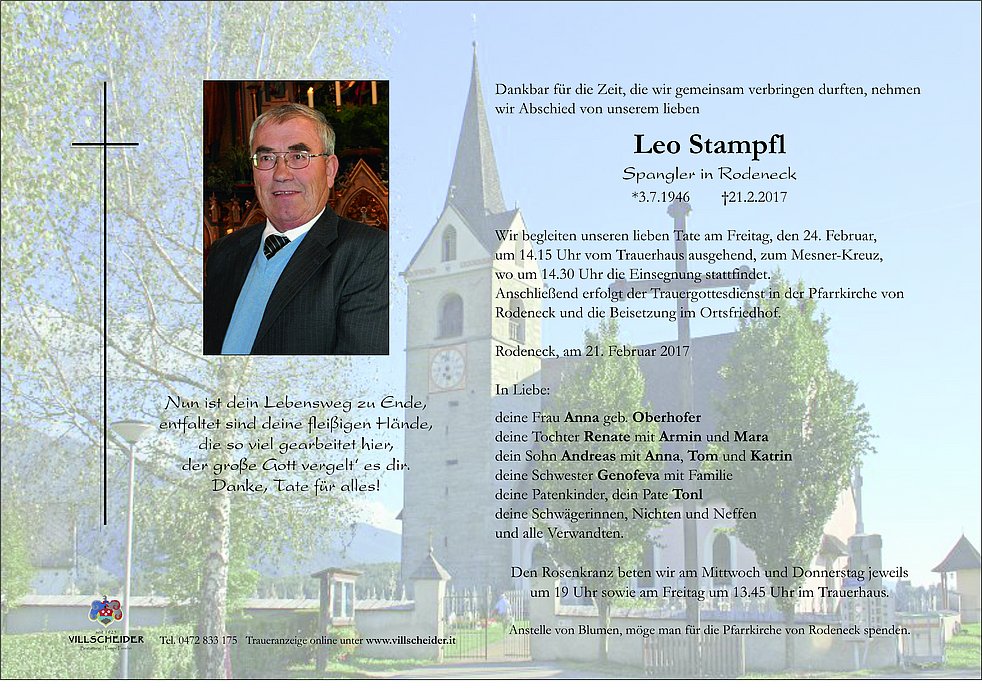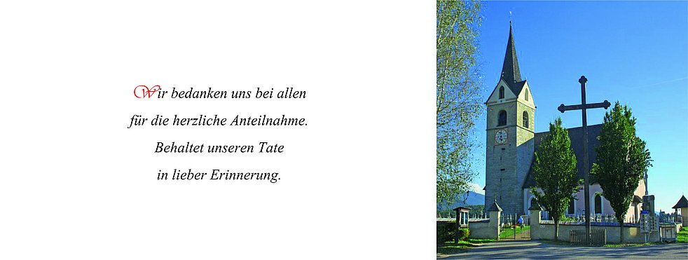 Anstelle von Blumen, möge man für die Pfarrkirche von Rodeneck spenden.