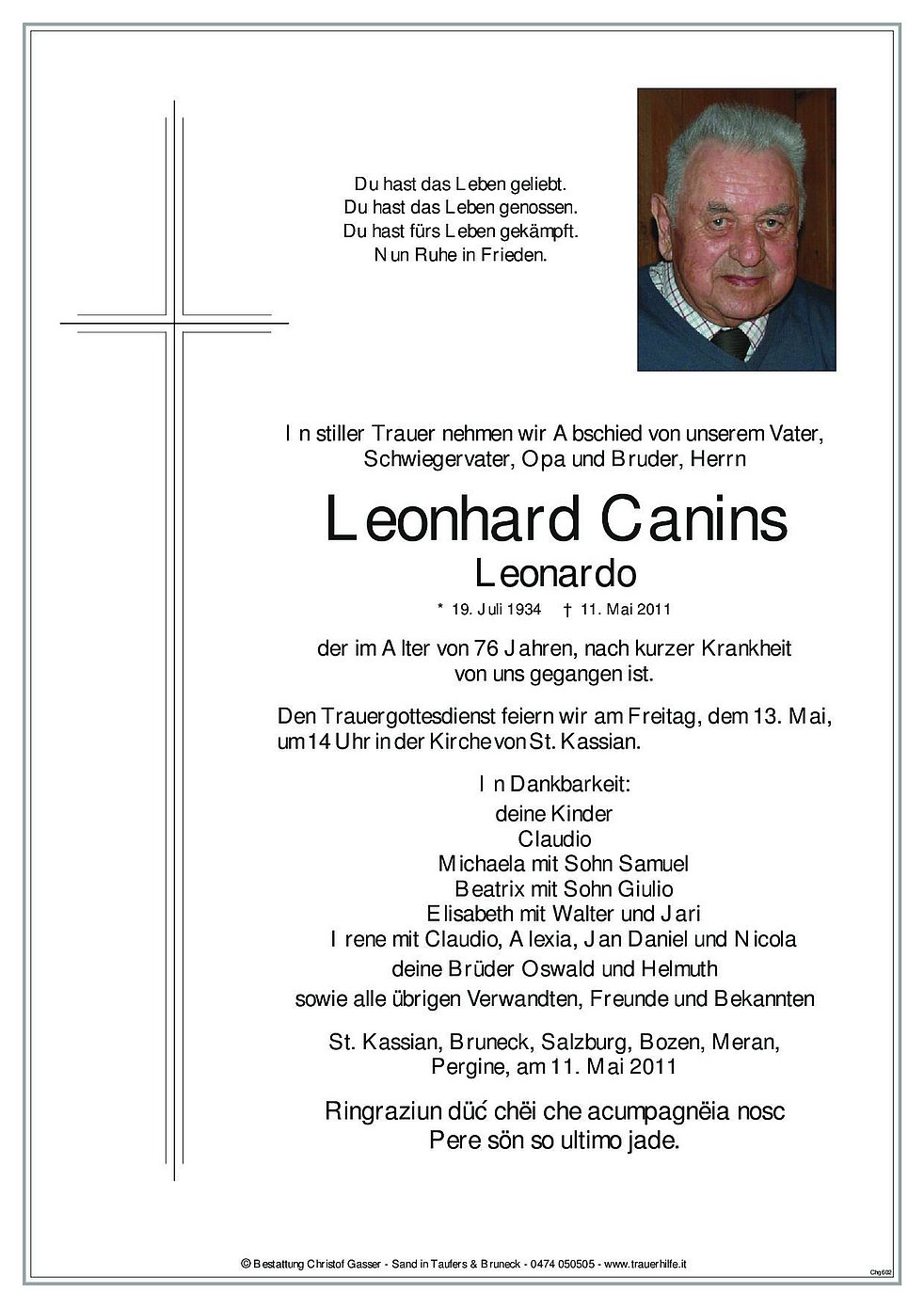 Den Trauergottesdienst feiern wir am Freitag, dem 13. Mai, um 14 Uhr in der Kirche von St. Kassian.