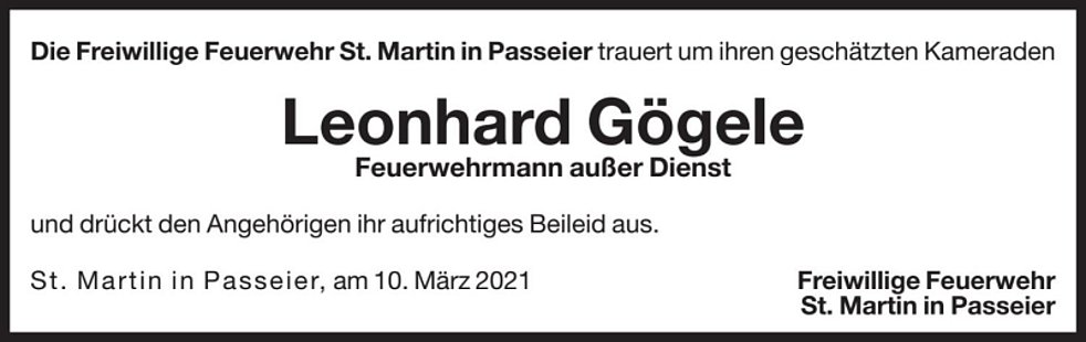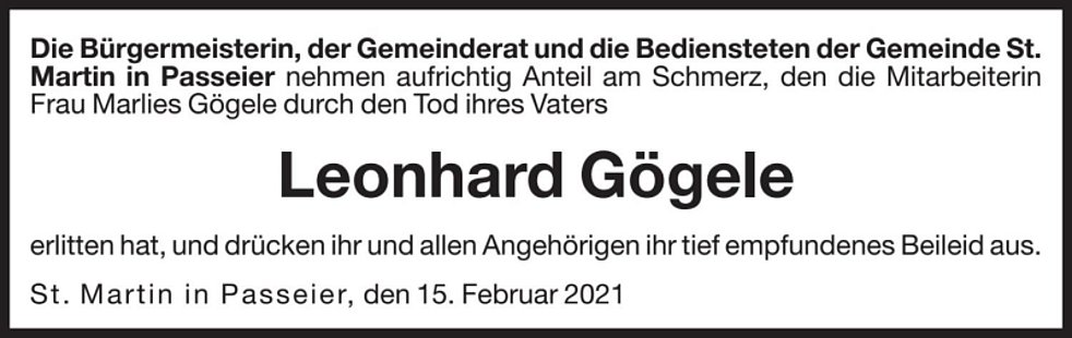 Den Trauergottesdienst mit Urnenbeisetzung feiern wir am Dienstag, 16. März, um 14.30 Uhr in der Pfarrkirche von St. Martin.