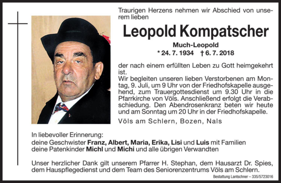 zum Trauergottesdienst um 9.30 Uhr in die Pfarrkirche von Völs.