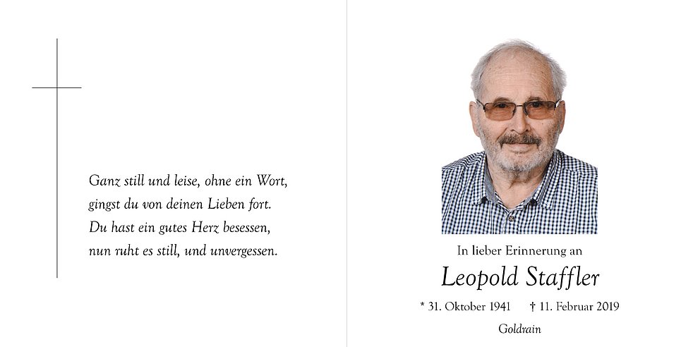 In Liebe und Dankbarkeit nehmen wir Abschied von meinem lieben Mann, unserem guten Tata, Schwiegervater, Opa, Bruder, Schwager, Onkel, Schwiegersohn und Paten, Herrn