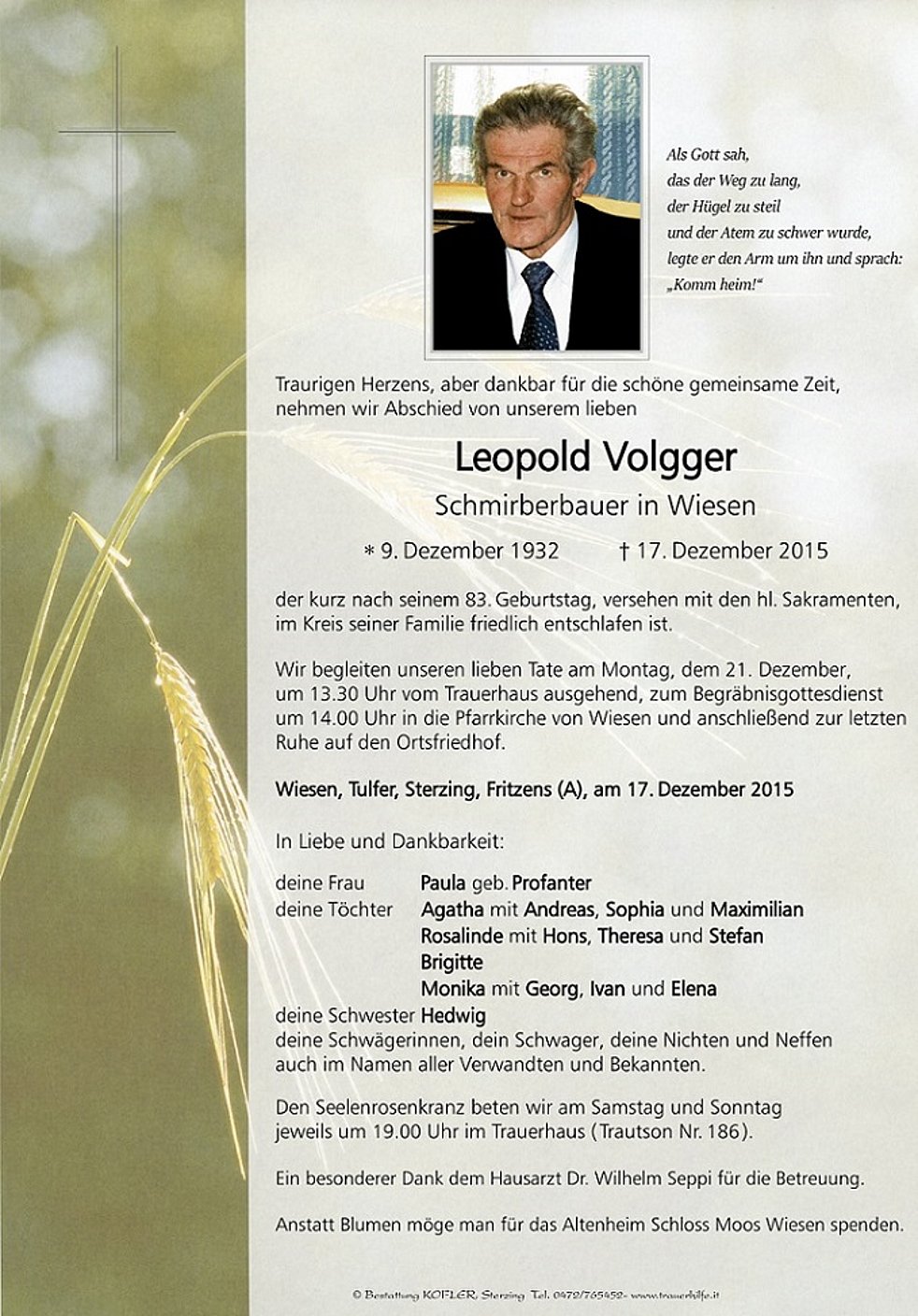 der kurz nach seinem 83. Geburtstag, versehen mit den hl. Sakramenten,