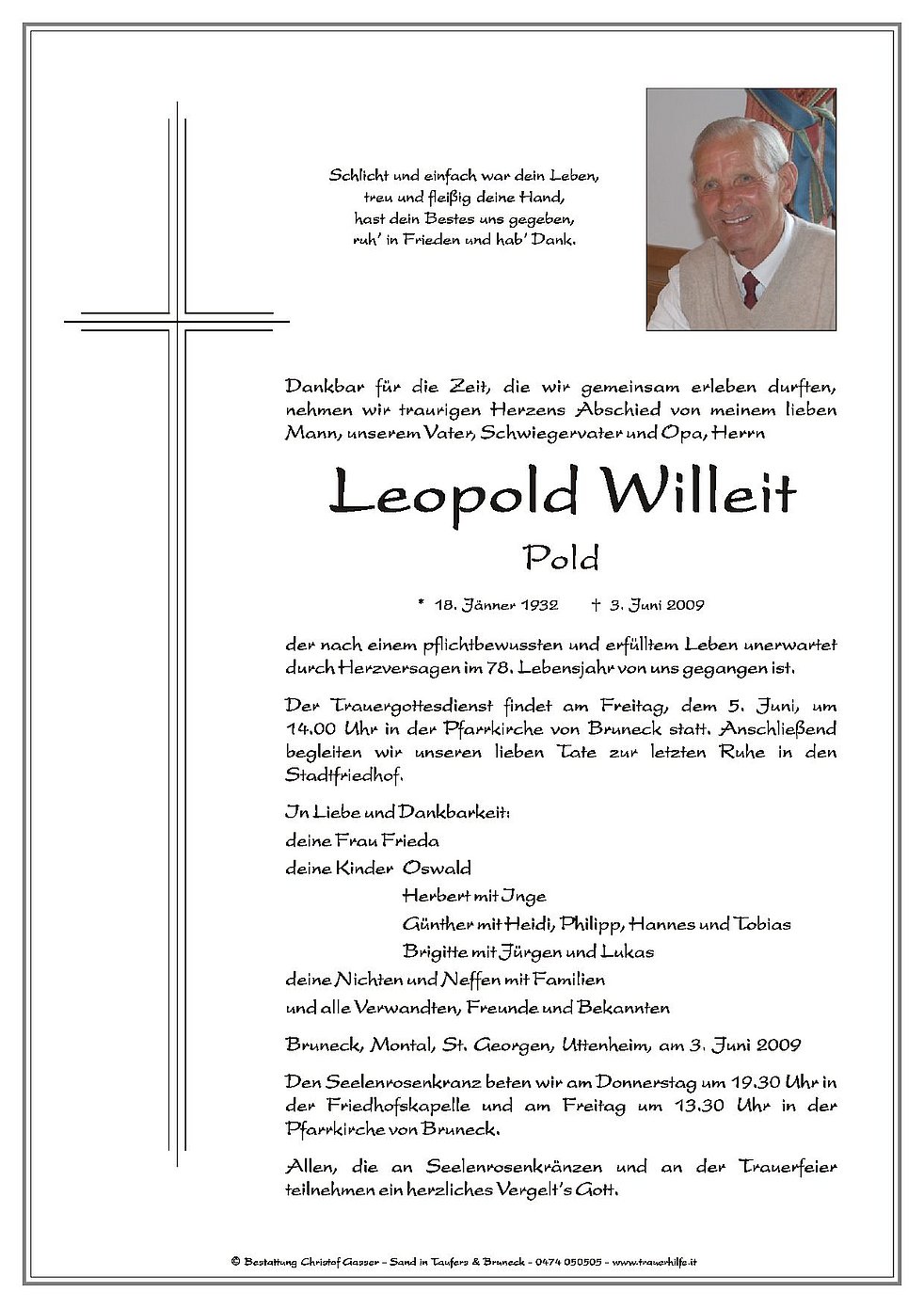14.00 Uhr in der Pfarrkirche von Bruneck statt. Anschließend begleiten wir unseren lieben Tate zur letzten Ruhe in den Stadtfriedhof.