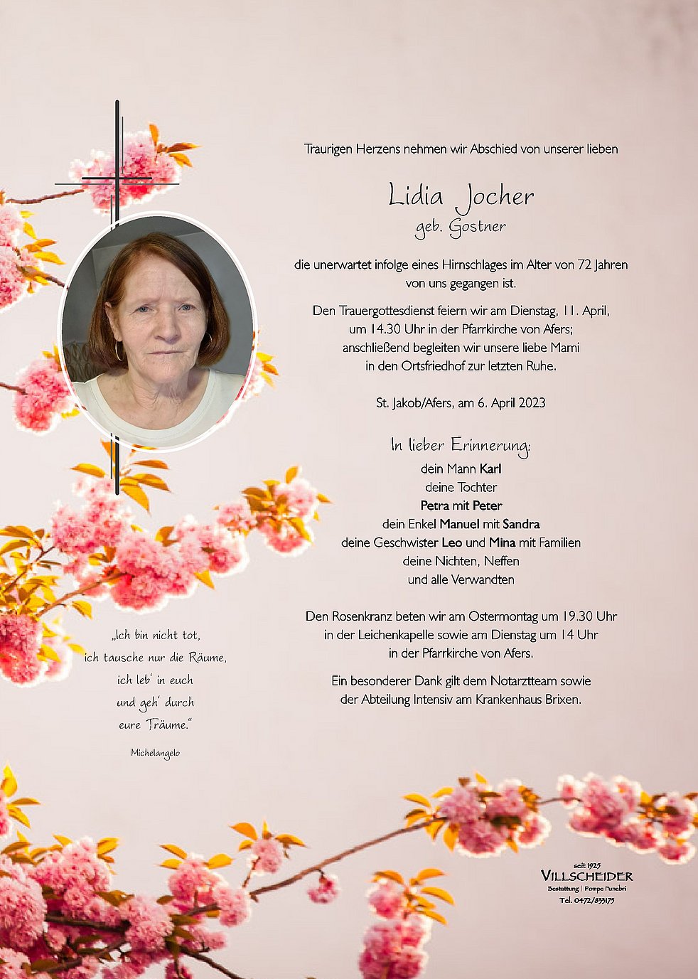 Begräbnisgottesdienst: 11.04. - 14:30 Uhr Afers
