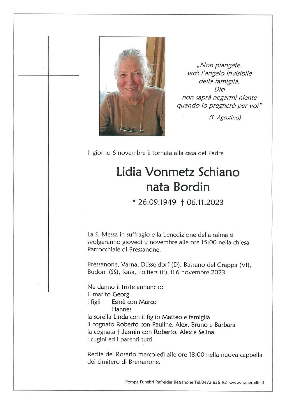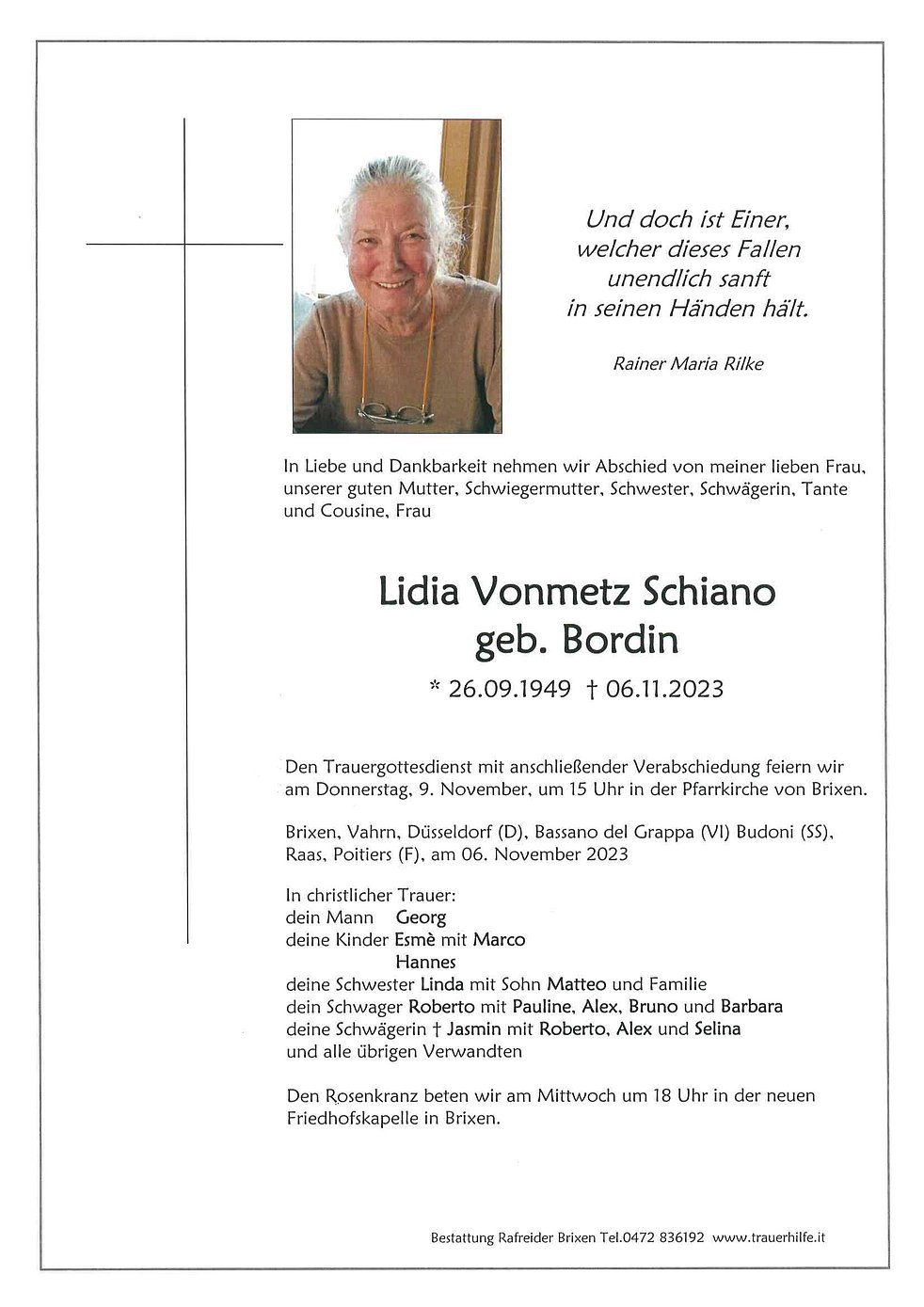 Trauerfeier: 09.11. - 15:00 Uhr Pfarrkirche Brixen