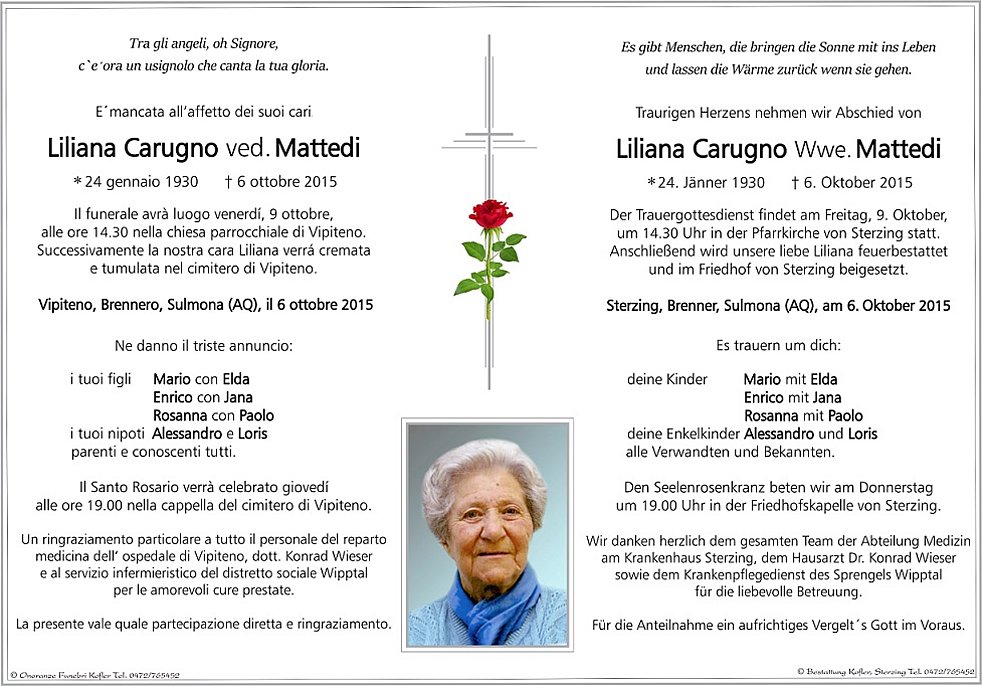 feuerbestattet und im Friedhof von Sterzing beigesetzt.