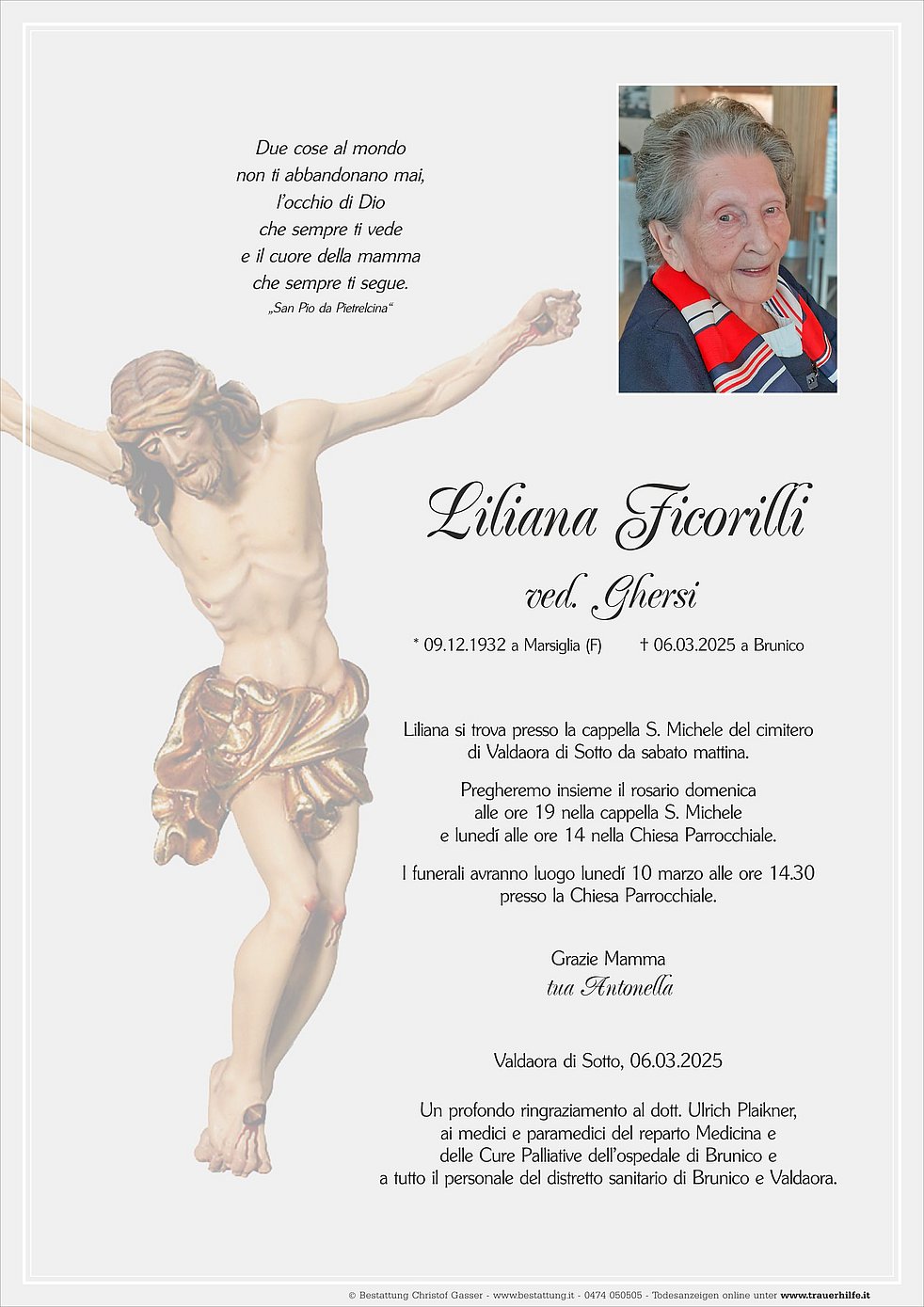 I funerali avranno luogo lunedí 10 marzo alle ore 14.30