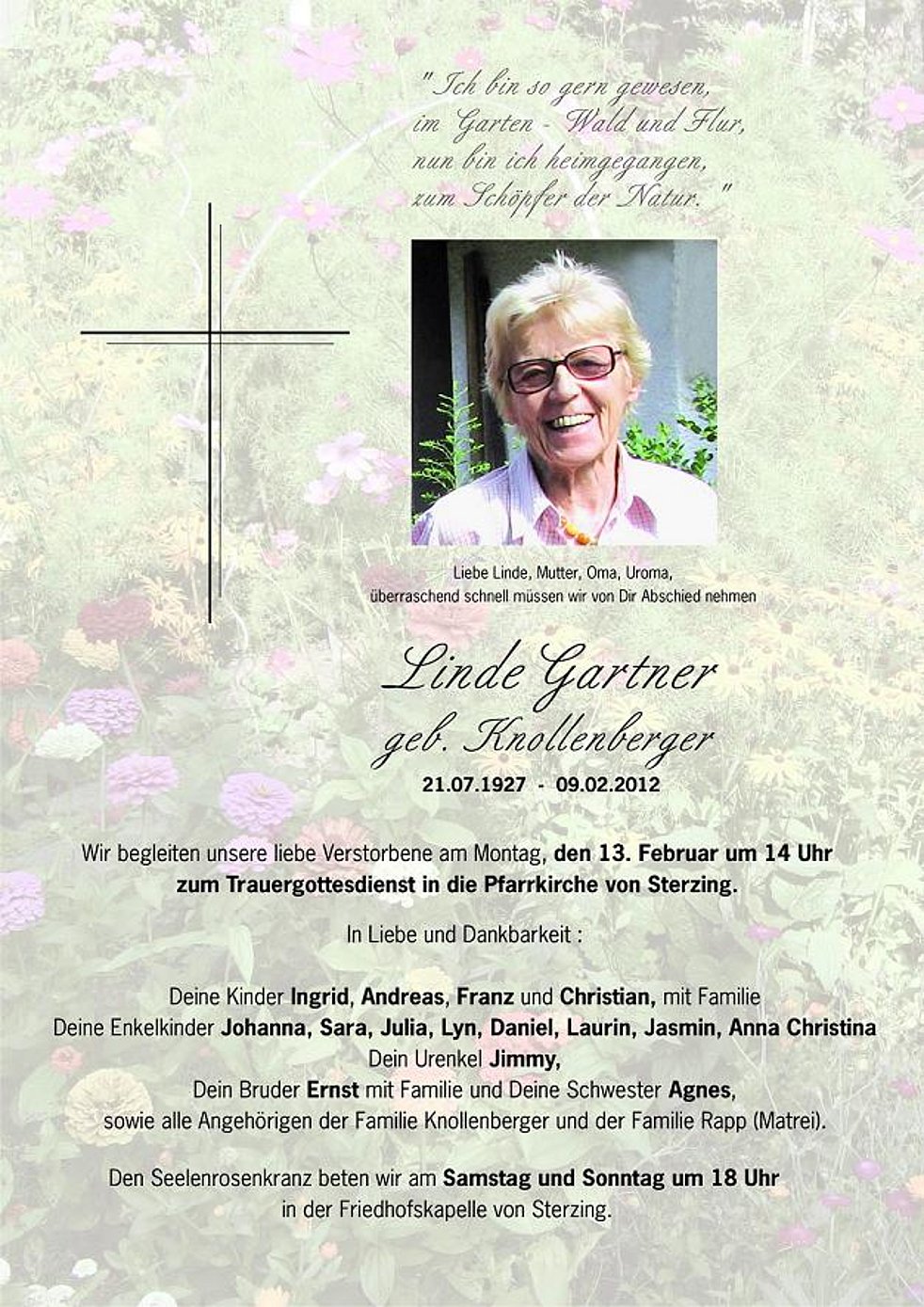 sowie alle Angehörigen der Familie Knollenberger und der Familie Rapp (Matrei).