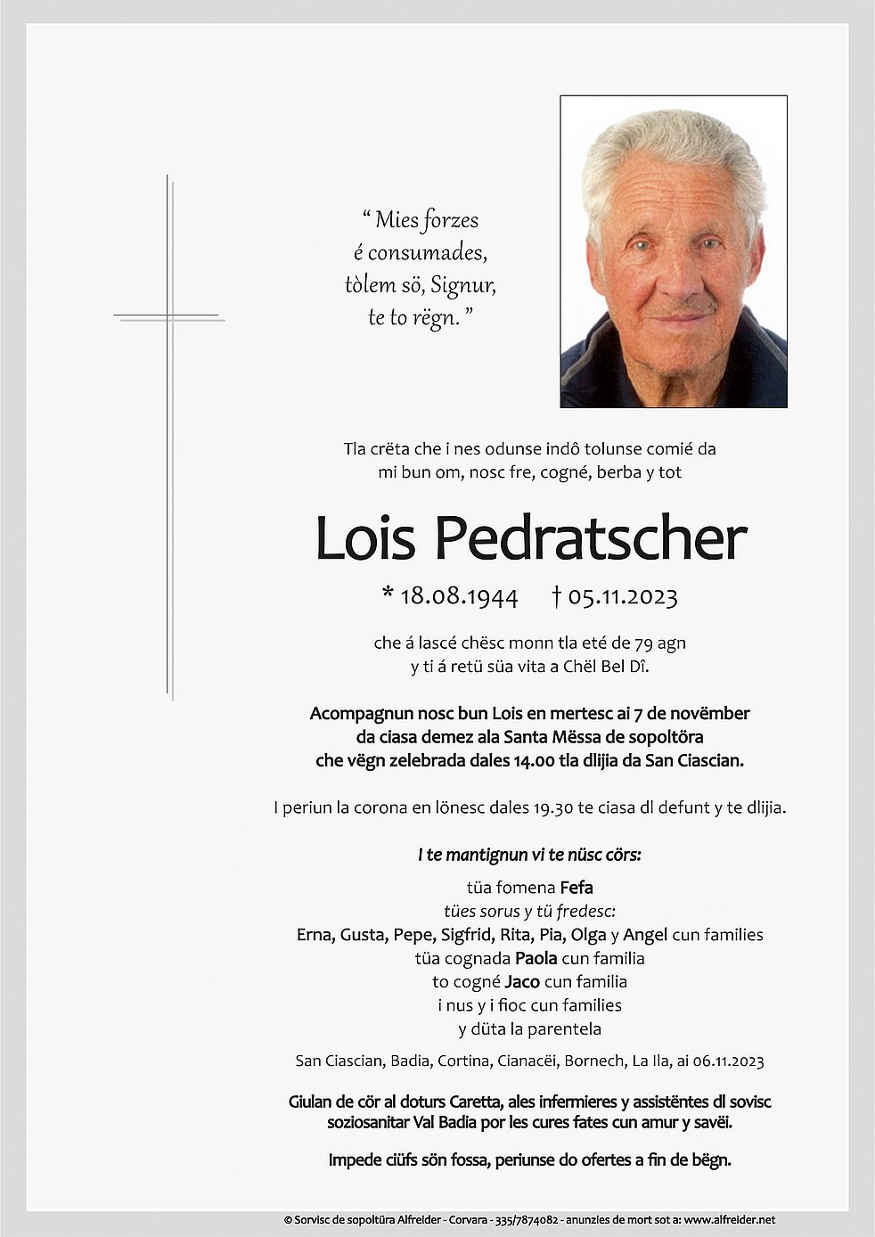 Verabschiedung: 07.11. - 14:00 Uhr Pfarrkirche St.Kassian