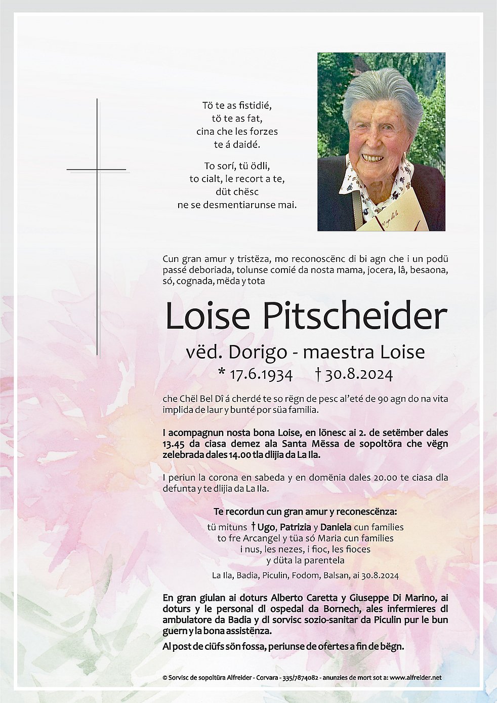 Giulan dl bëgn chi ëis fat, palsede tla pësc. Condolianzes a düc i familiars.