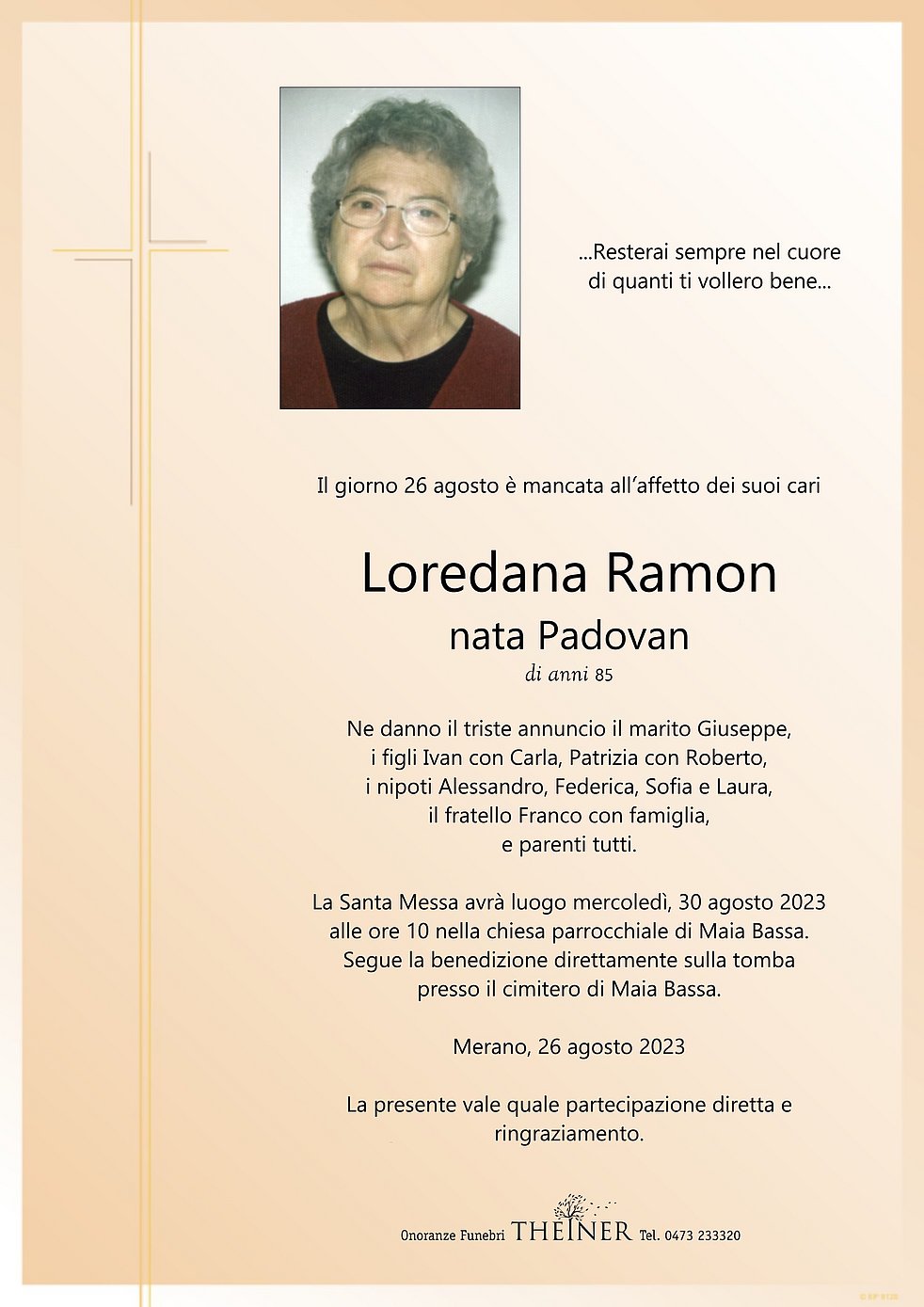 Il giorno 26 agosto è mancata all´‘affetto dei suoi cari