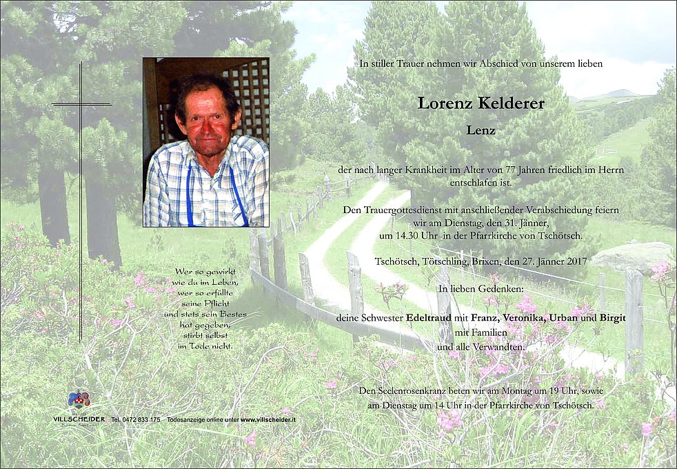 am Dienstag um 14 Uhr in der Pfarrkirche von Tschötsch.