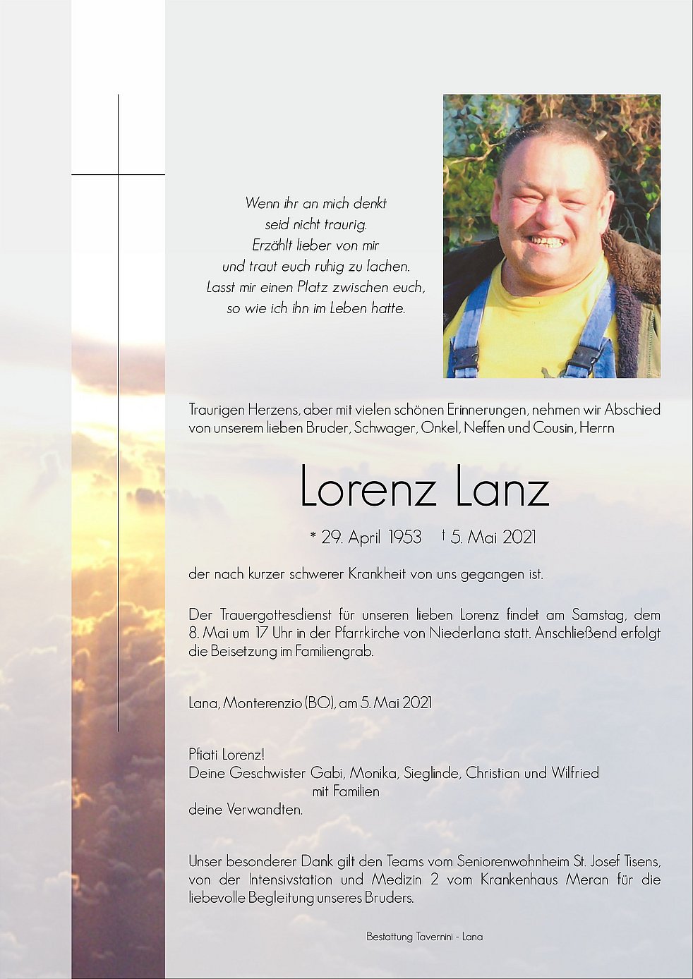 Unser herzliches Beileid zum Heimgang eures Bruders Lorenz .