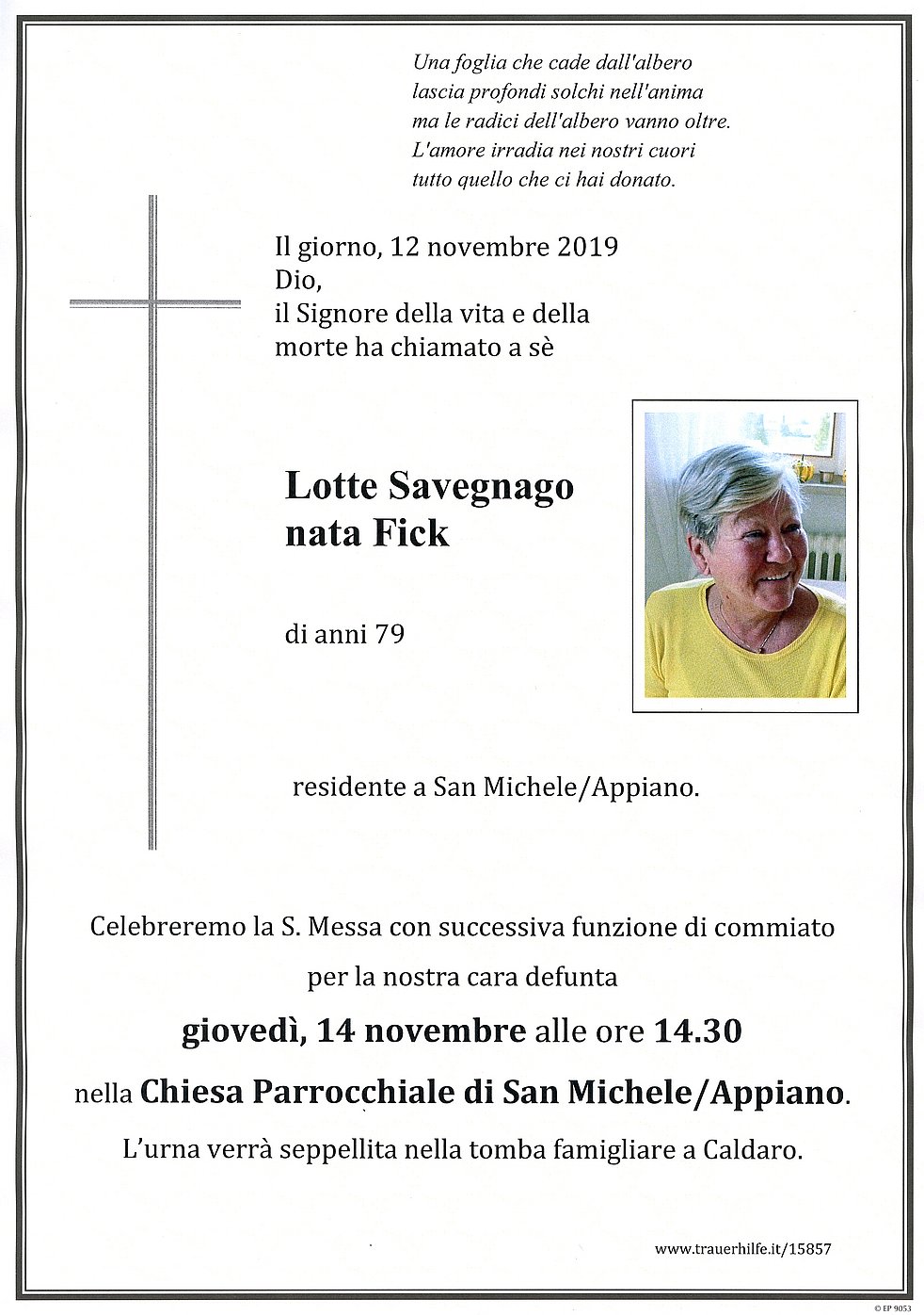 Liebe Barbara und Familie Savegnago. Lotte war eine sehr liebe und hilfsbereite Nachbarin. Schade dass sie dann weggezogen ist. Unser aufrichtiges Mitgefühl. Wir werden sie in guter Erinnerung behalten.