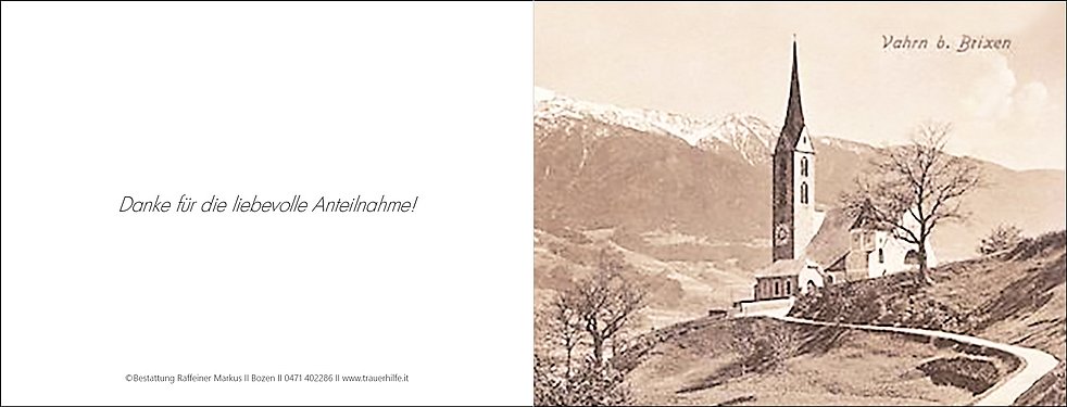 Den Trauergottesdienst mit anschlieβender Einsegnung feiern wir am Dienstag, 14. Jänner, um 14.30 Uhr im Dom von Bozen.