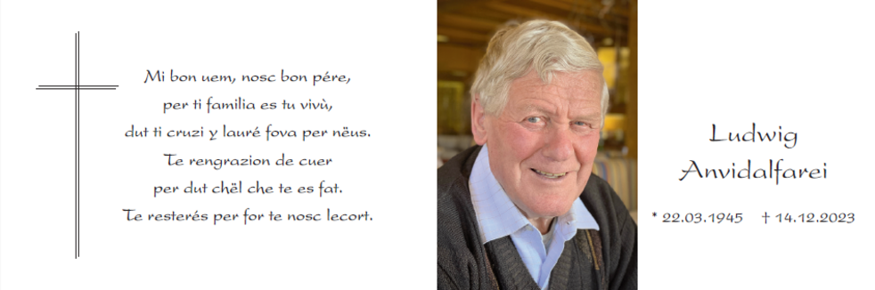 Den Trauergottesdienst feiern wir am Samstag, dem 16. Dezember, um 14.30 Uhr in der Pfarrkirche von St. Ulrich. Anschließend begleiten wir ihn in den Ortsfriedhof zur letzten Ruhe.