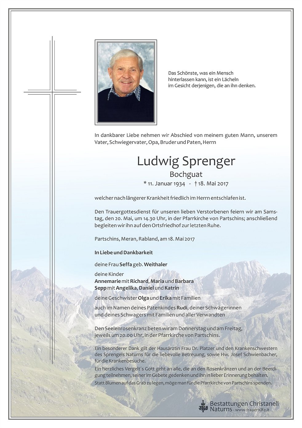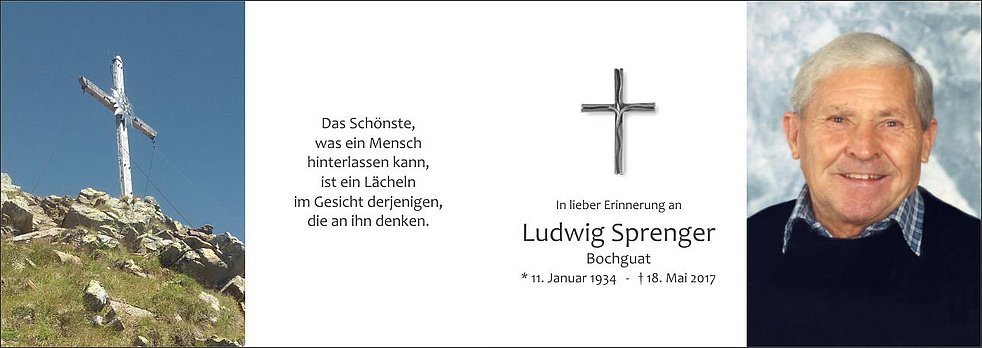 Den Trauergottesdienst für unseren lieben Verstorbenen feiern wir am Samstag, den 20. Mai, um 14.30 Uhr, in der Pfarrkirche von Partschins; anschließend begleiten wir ihn auf den Ortsfriedhof zur letzten Ruhe.