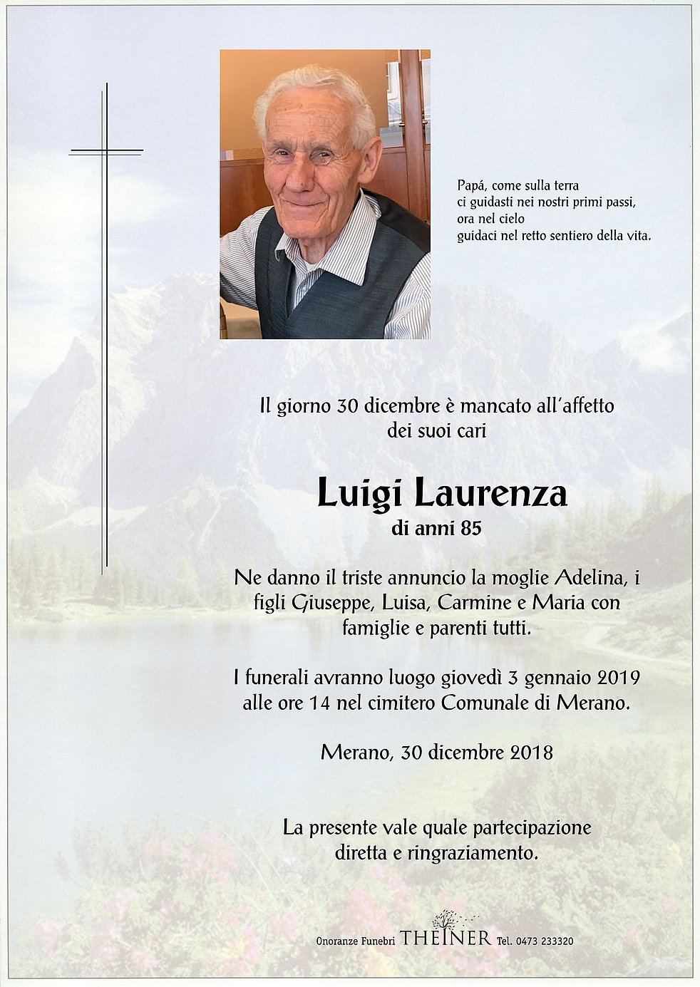 I funerali avranno luogo giovedì 3 gennaio 2019 alle ore 14 nel cimitero Comunale di Merano.