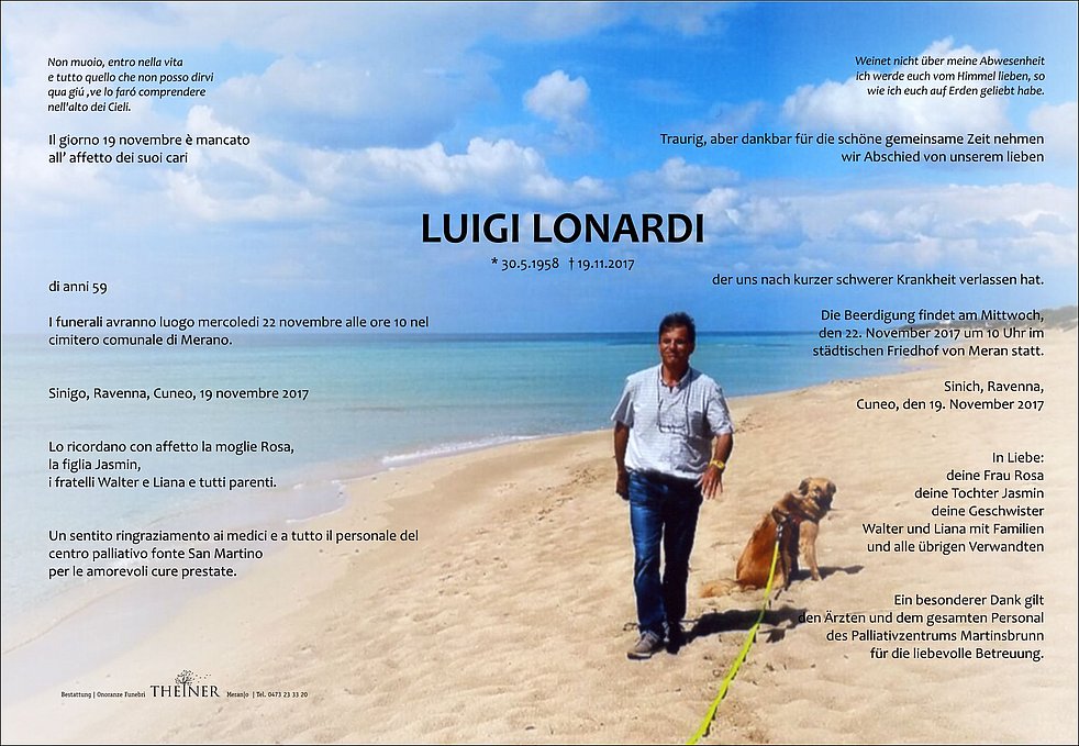 Die Beerdigung findet am Mittwoch, den 22. November 2017 um 10 Uhr im städtischen Friedhof von Meran statt.