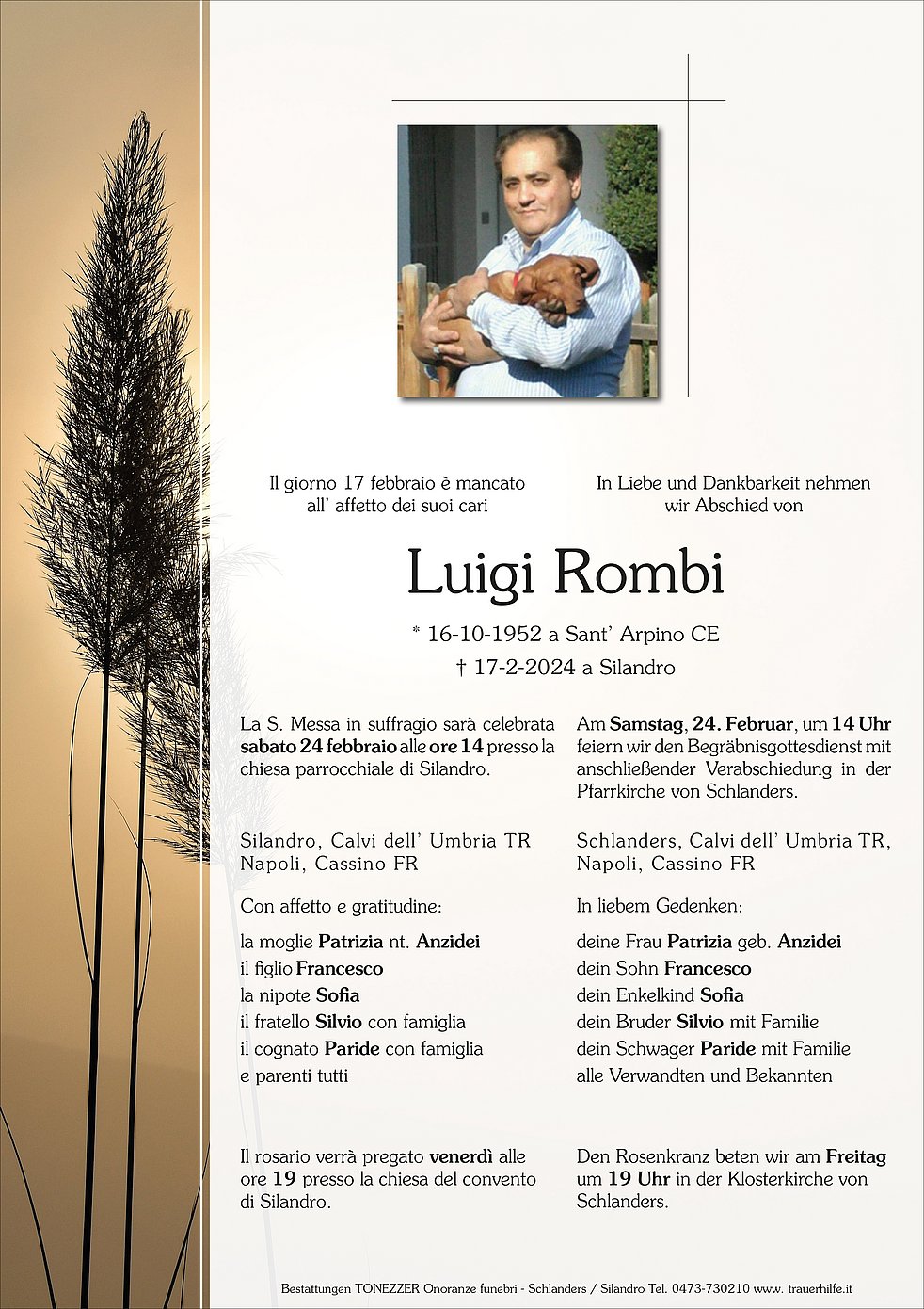 7te und 30ste mit Urnenbeisetzung: 06.03. - 18:45 Uhr Friedhof & Pfarrkirche Schlanders